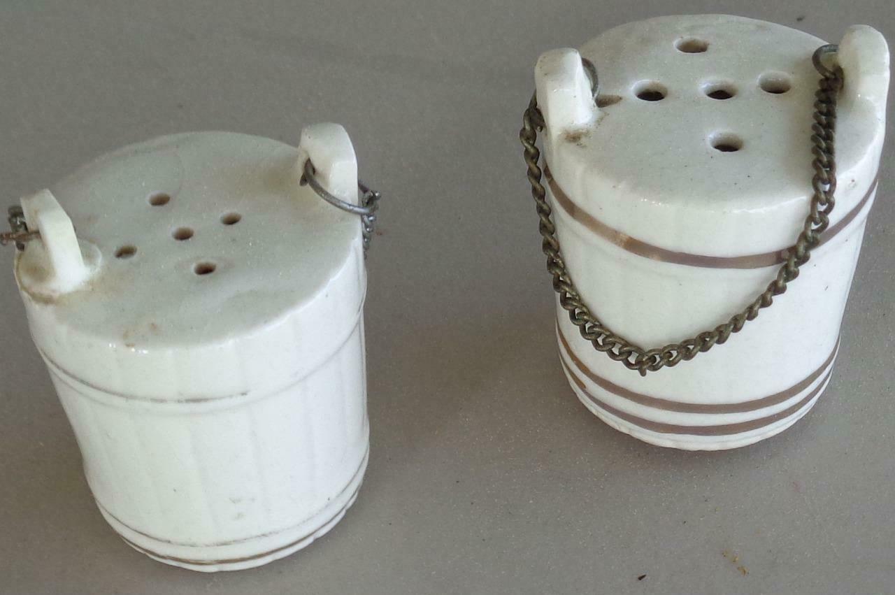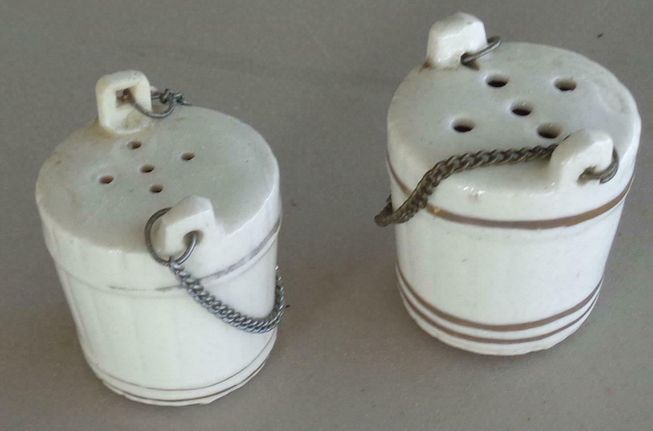 Cute Vintage Porcelain Water Bucket Figural Salt & Pepper Set – Japan – VGC CUTE