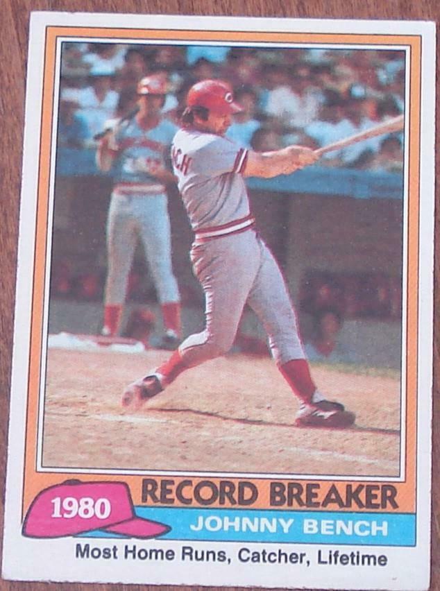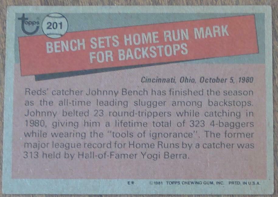 Johnny Bench, Reds, 1981 #201 Topps Baseball Card - GD COND - RECORD BREAKER
