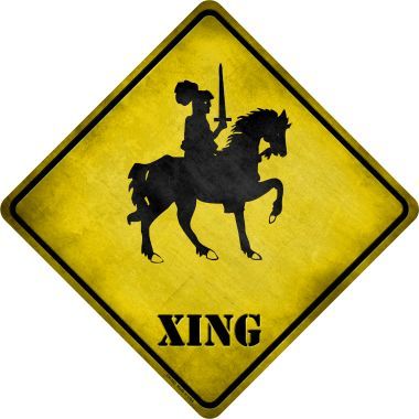 Knight on Horse Xing Novelty Metal Crossing Sign