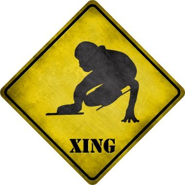 Speed Skater Xing Novelty Metal Crossing Sign. 16.5"X16.5" metal crossing sign, 12"x12' square size.Made of the highest quality aluminum for a weather resistant finish. It is lightweight and durable and has pre-drilled holes for quick and easy mounting. Personalize with ribbon, wire or string. Individually shrink-wrapped and proudly made in the USA.