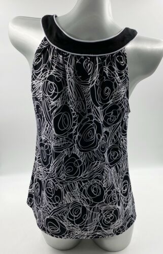 Notations Sleeveless Top Size Small Black White Swirl Print Stretch Tank Womens added to cart.