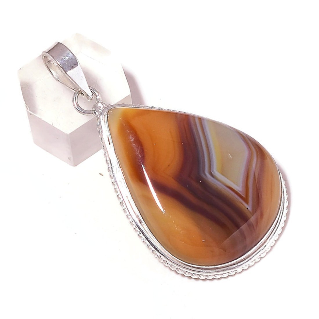 Banded Honey Agate Gemstone 925 Silver Overlay Handmade Artisan Designed Pendant