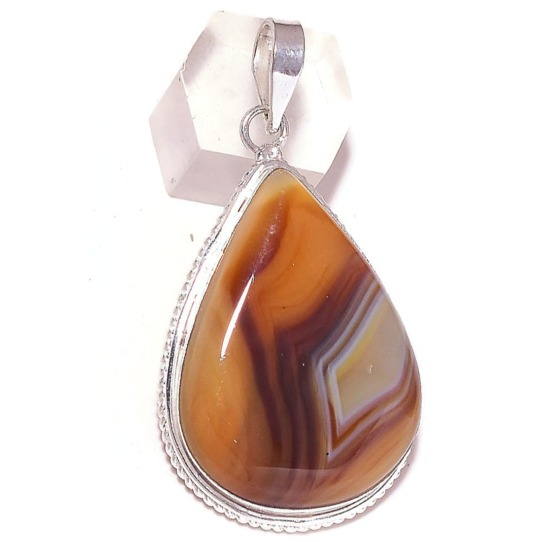 Banded Honey Agate Pear Gemstone 925 Silver Overlay Handmade Artisan Design Pendant