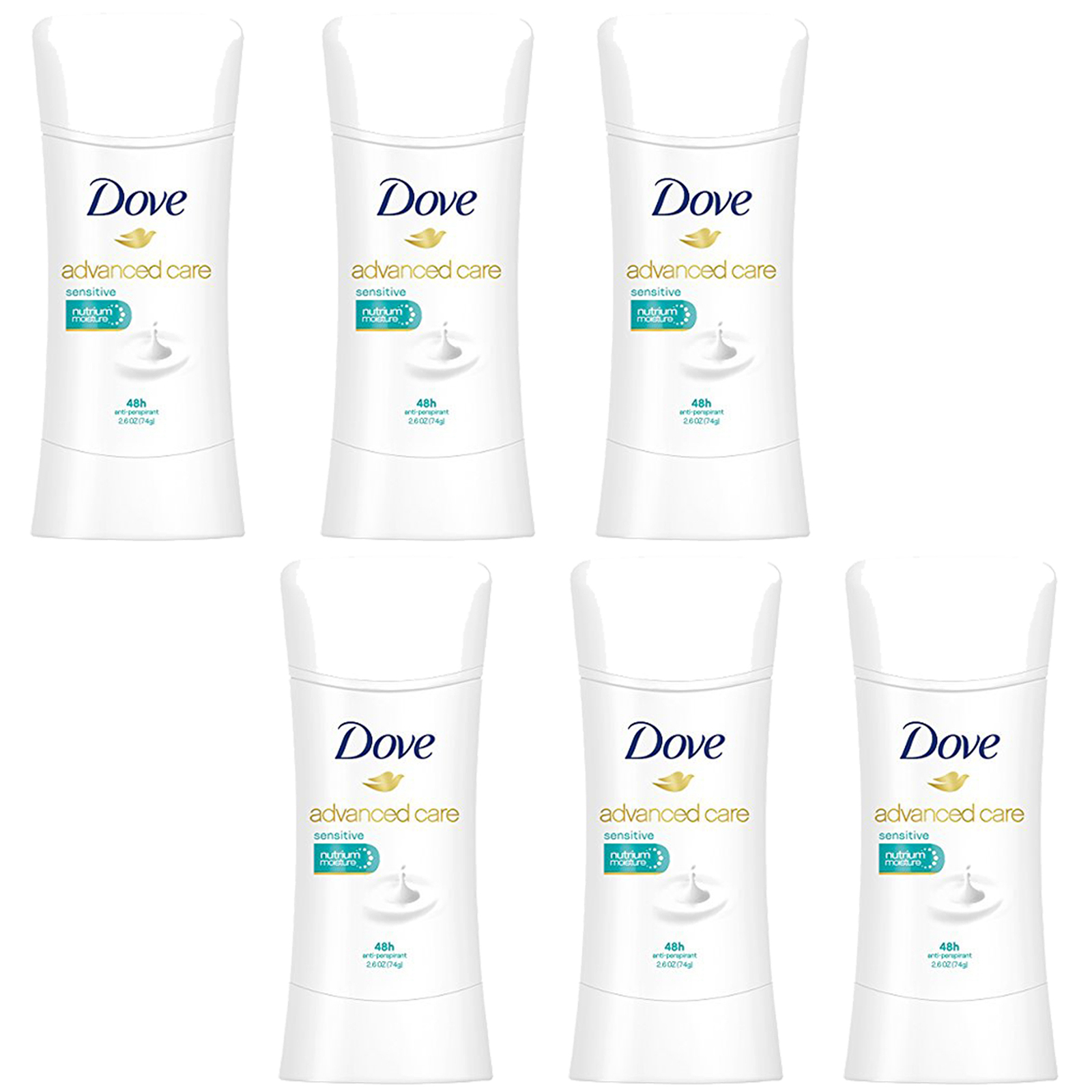 NEW Dove Advanced Care Antiperspirant Deodorant Sensitive 2.60 Ounces (6 Pack)