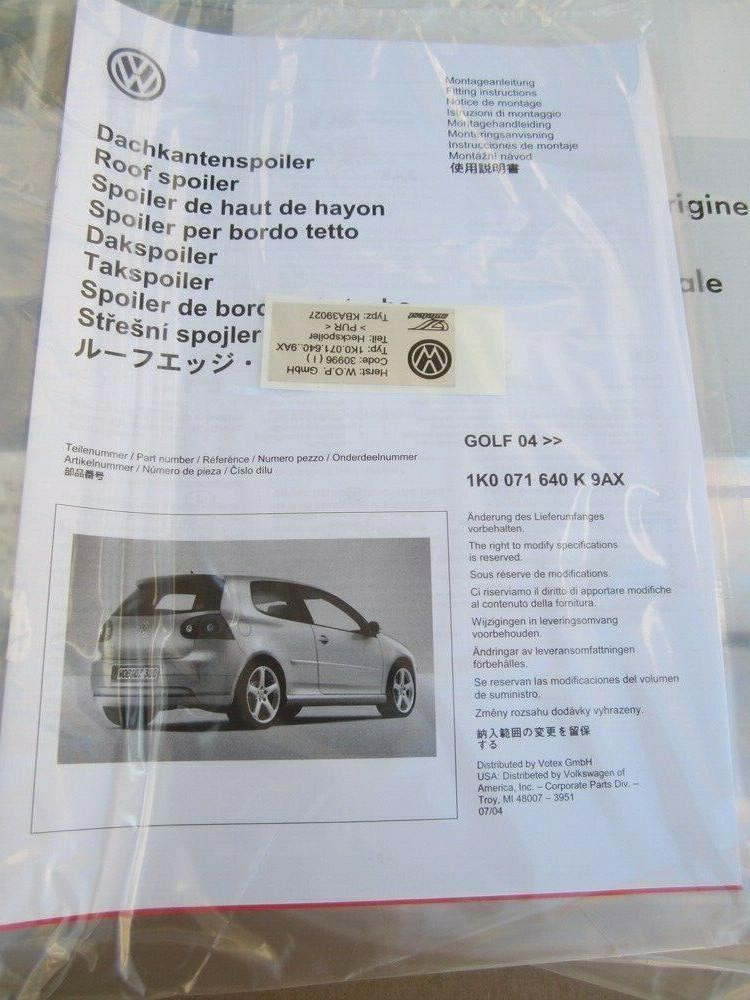 This ad is for a new in the original box OEM VW accessory Roof Spoiler for 2006, 2007, 2008 and 2009 VW Rabbit. It is already primed from the factory. The VW catalog number of this item is;