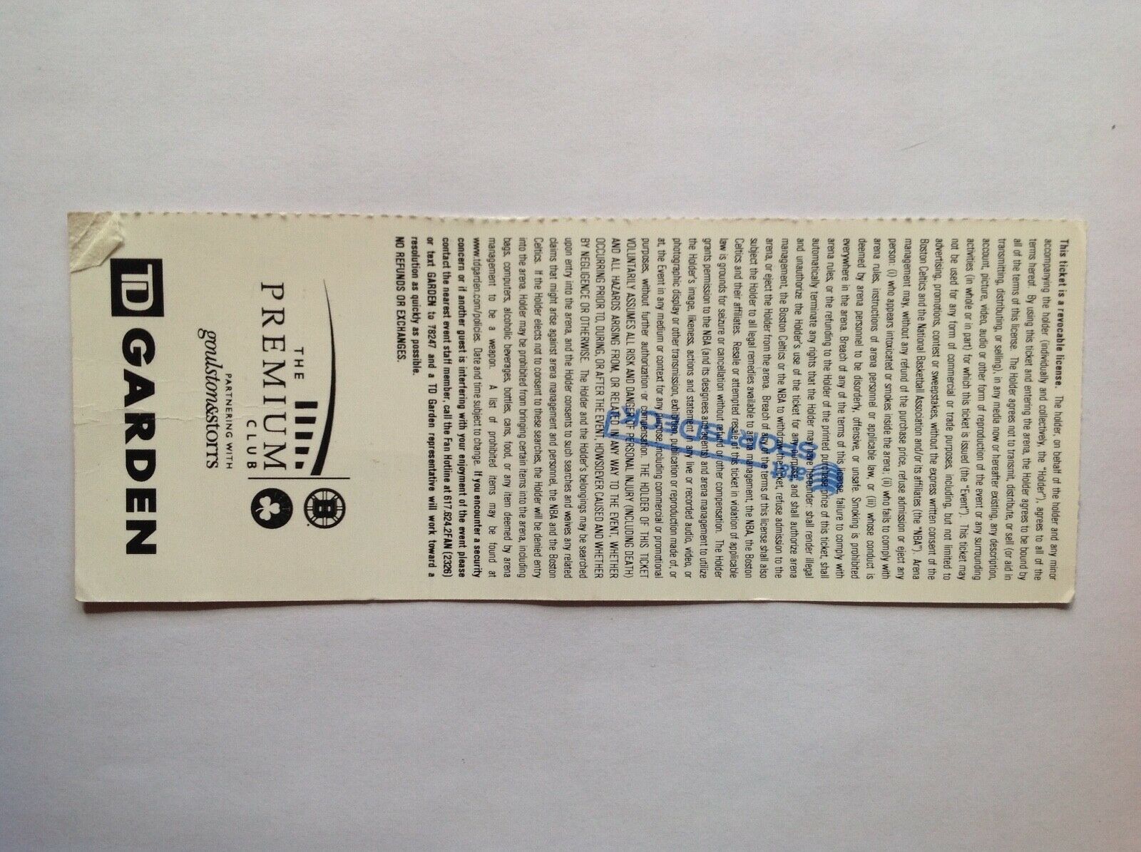 2011-12 Paul Pierce Boston Celtics VS Charlotte Ticket Stub Feb 7th @ TD Garden, pre owned in good condition ans will be sent fast
