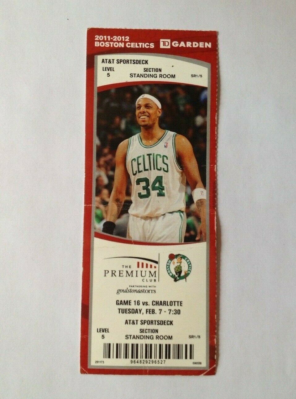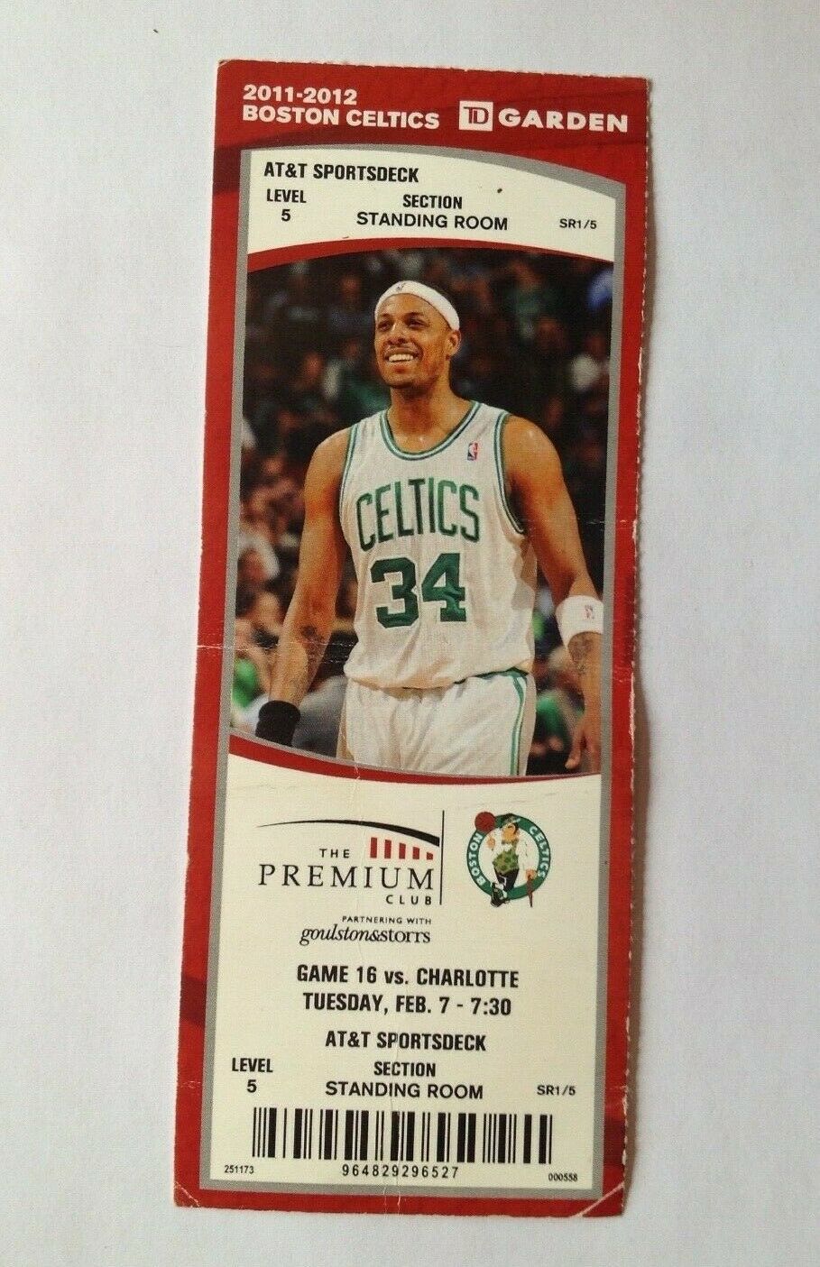 2011-12 Paul Pierce Boston Celtics VS Charlotte Ticket Stub Feb 7th @ TD Garden