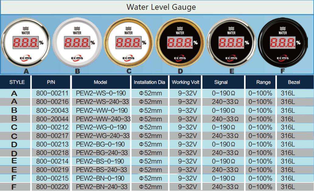 We can also provide 240-33 ohms signal digital water tank level gauges and matching water tank level senders, please see our store listings or contact us directly for details.