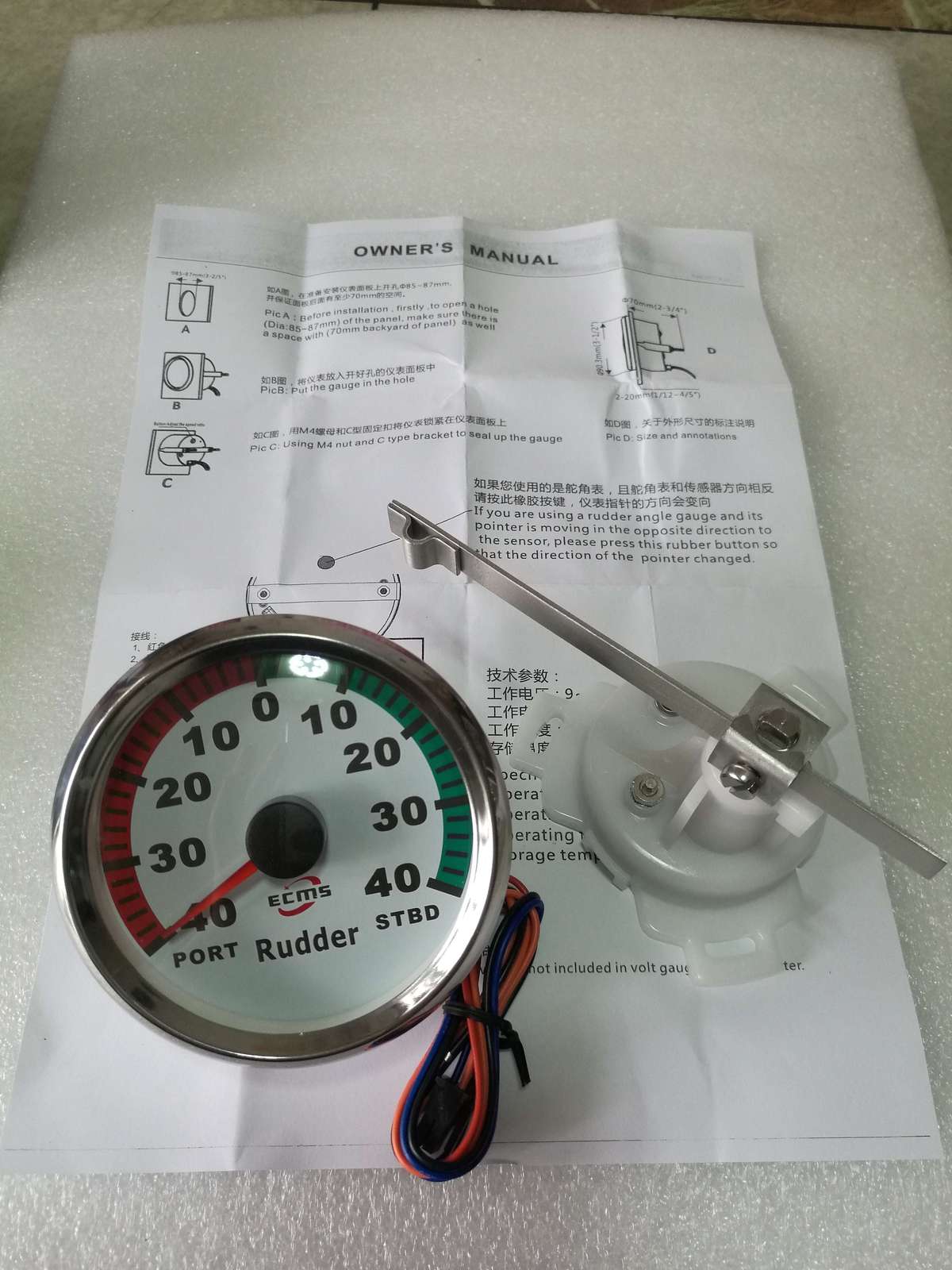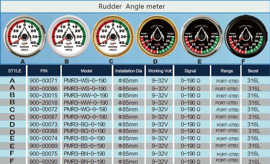 Marine Boat Yacht Rudder Indicator Gauge With Rudder Sensor 0-190? 85mm 3.35” 9-32V 316L Bezel