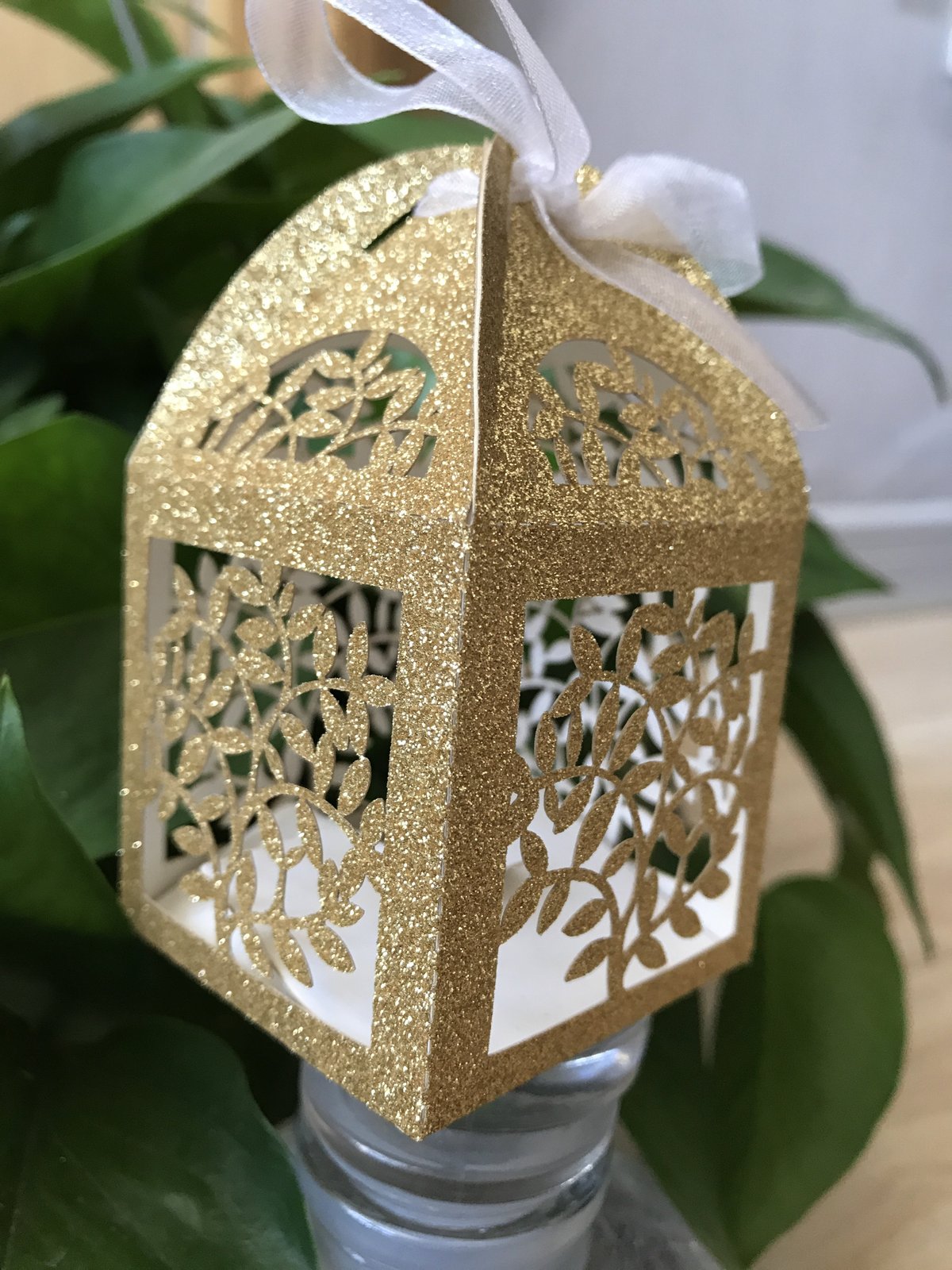 Glitter paper silver/Gold color on the photo,Ribbon is white color;The size:5*5*8.5cm;