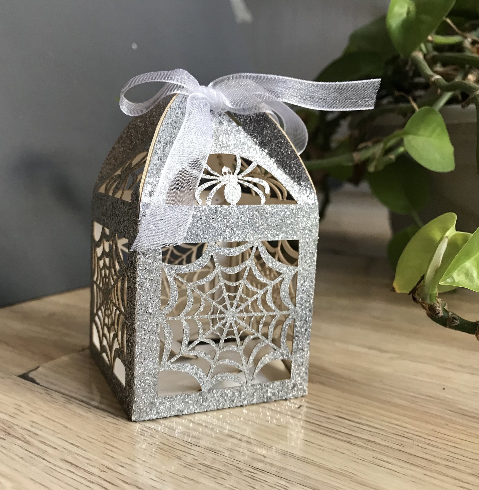 Glitter paper silver/Gold color on the photo,Ribbon is white color;The size:5*5*8.5cm;