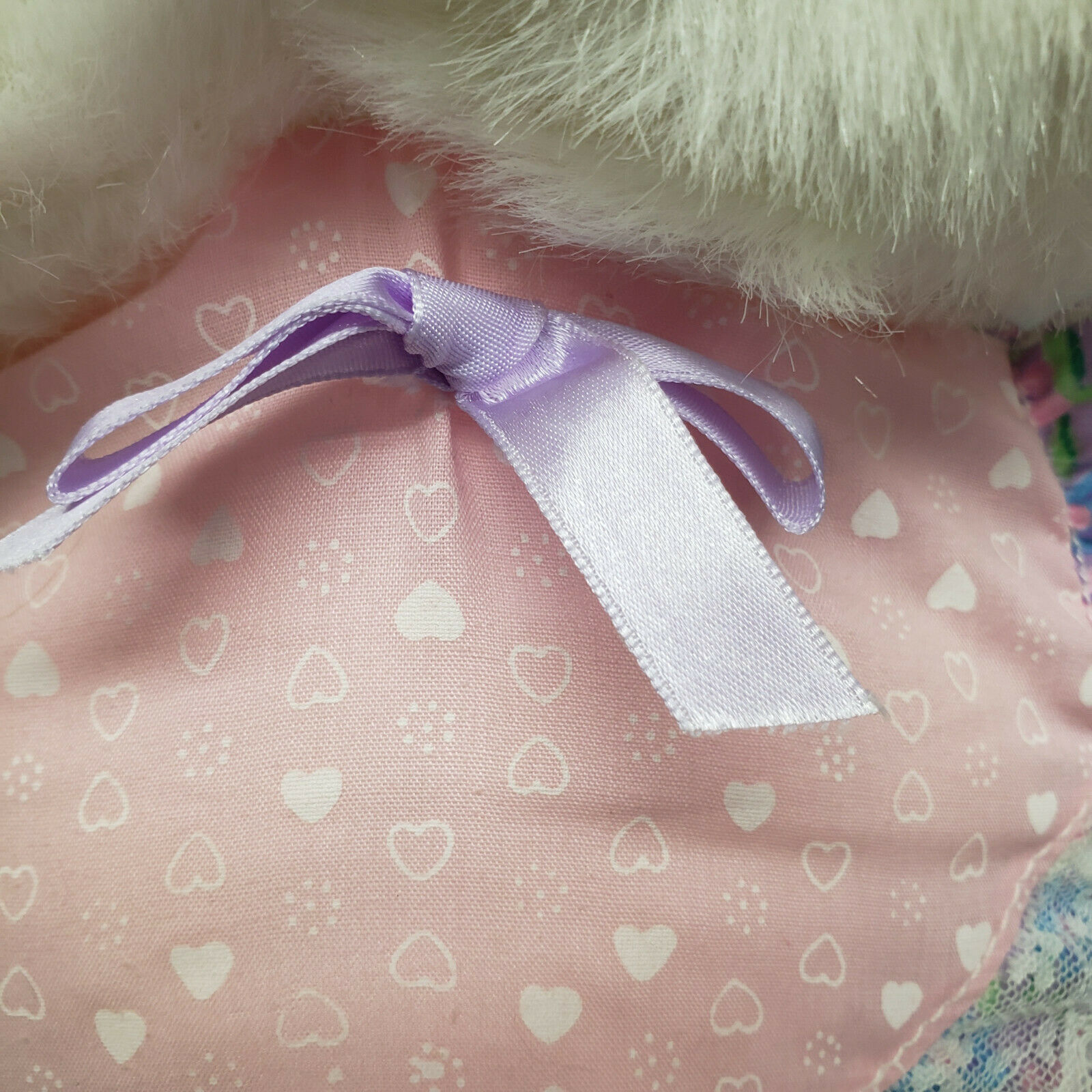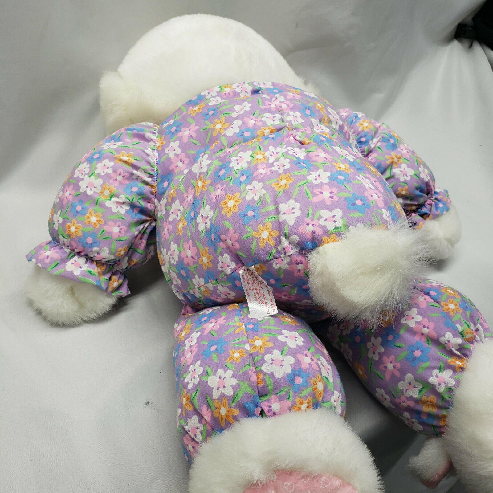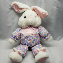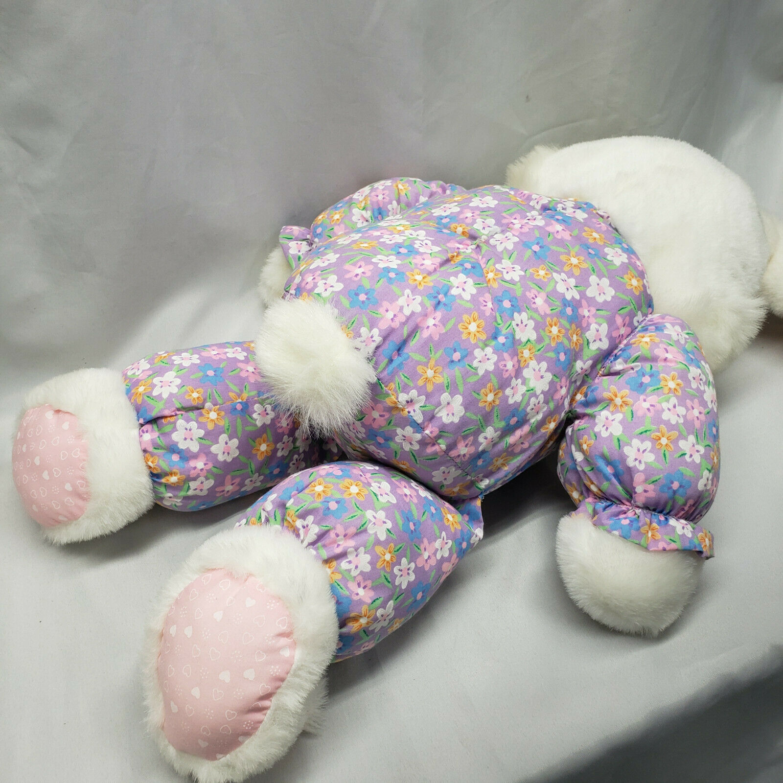 Dandee Large White Stuffed Plush Easter Bunny Rabbit Cloth Purple Flower Slipper