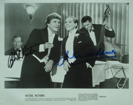 This is an AUTHENTIC HAND SIGNED ORIGINAL Vintage 8"x 10" BW photo of 2 main cast members in the film"VICTOR VICTORIA" featuring the autographs by JULIE ANDREWS and ROBERT PRESTON. Victor/Victoria is a 1982 British-American musical comedy film directed by Blake Edwards and starring Julie Andrews, James Garner, Robert Preston, Lesley Ann Warren, Alex Karras, and John Rhys-Davies. The film was produced by Tony Adams and scored by Henry Mancini, with lyrics by Leslie Bricusse. Released by Metro-Goldwyn-Mayer, it was adapted in 1995 as a Broadway musical. The film was nominated for seven Academy Awards and won the Academy Award for Best Original Score. It is a remake of the 1933 German film Viktor und Viktoria.