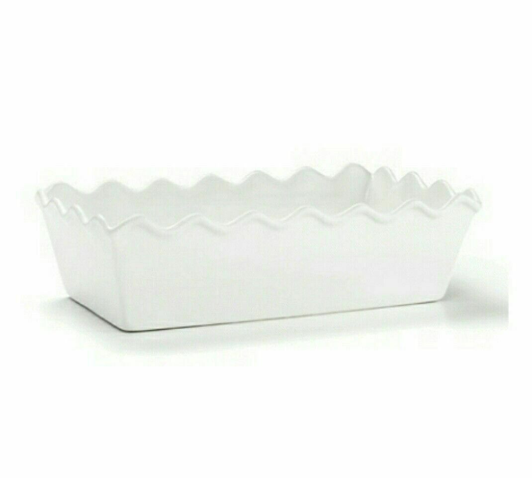 Avon Living White Porcelain Scalloped Bread Loaf Pan Baking Dish Ready to Serve