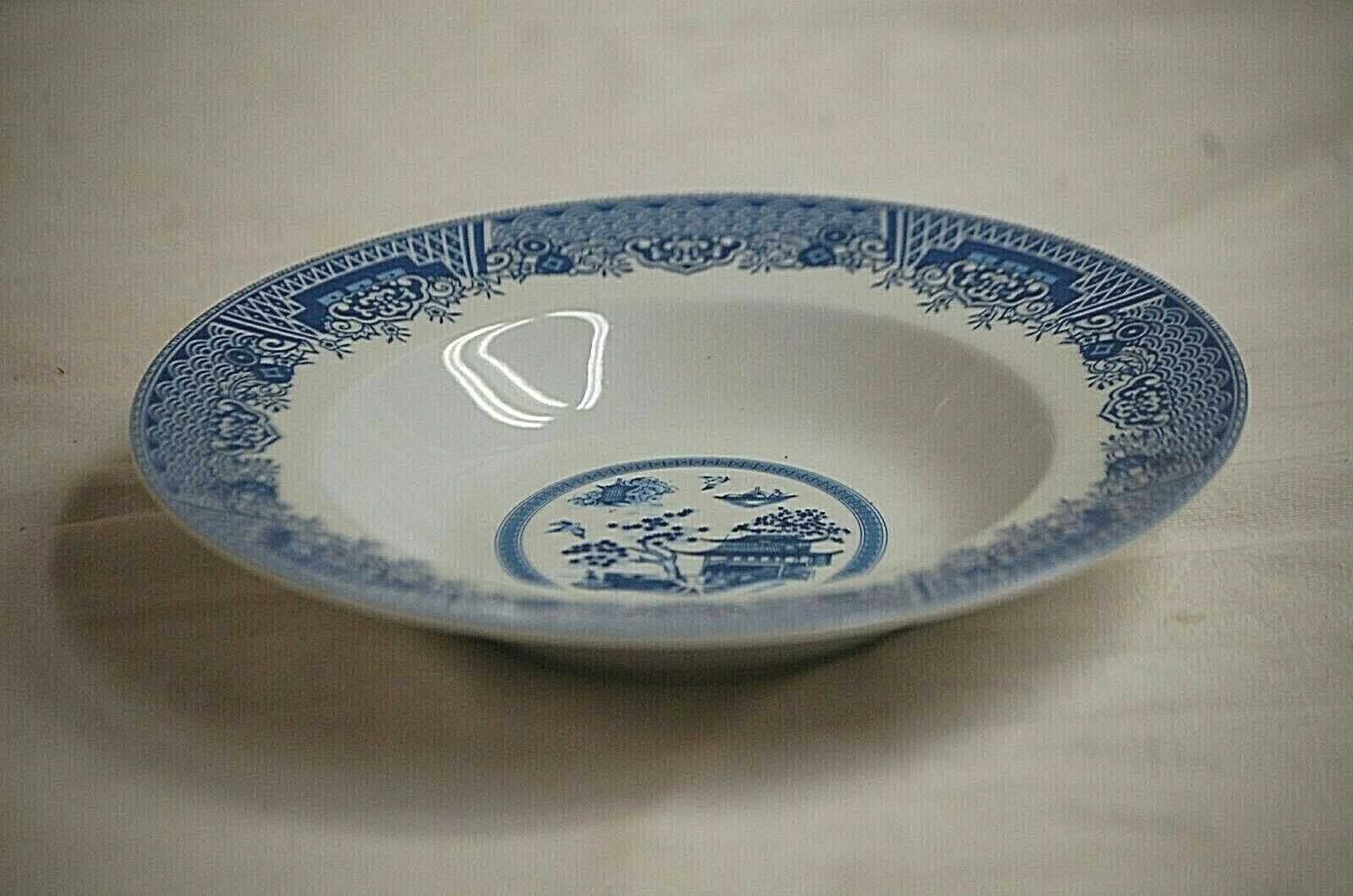 Chinese Garden Blue By Emerald 8-1/2" Porcelain Rim Soup Bowl Oriental Scene