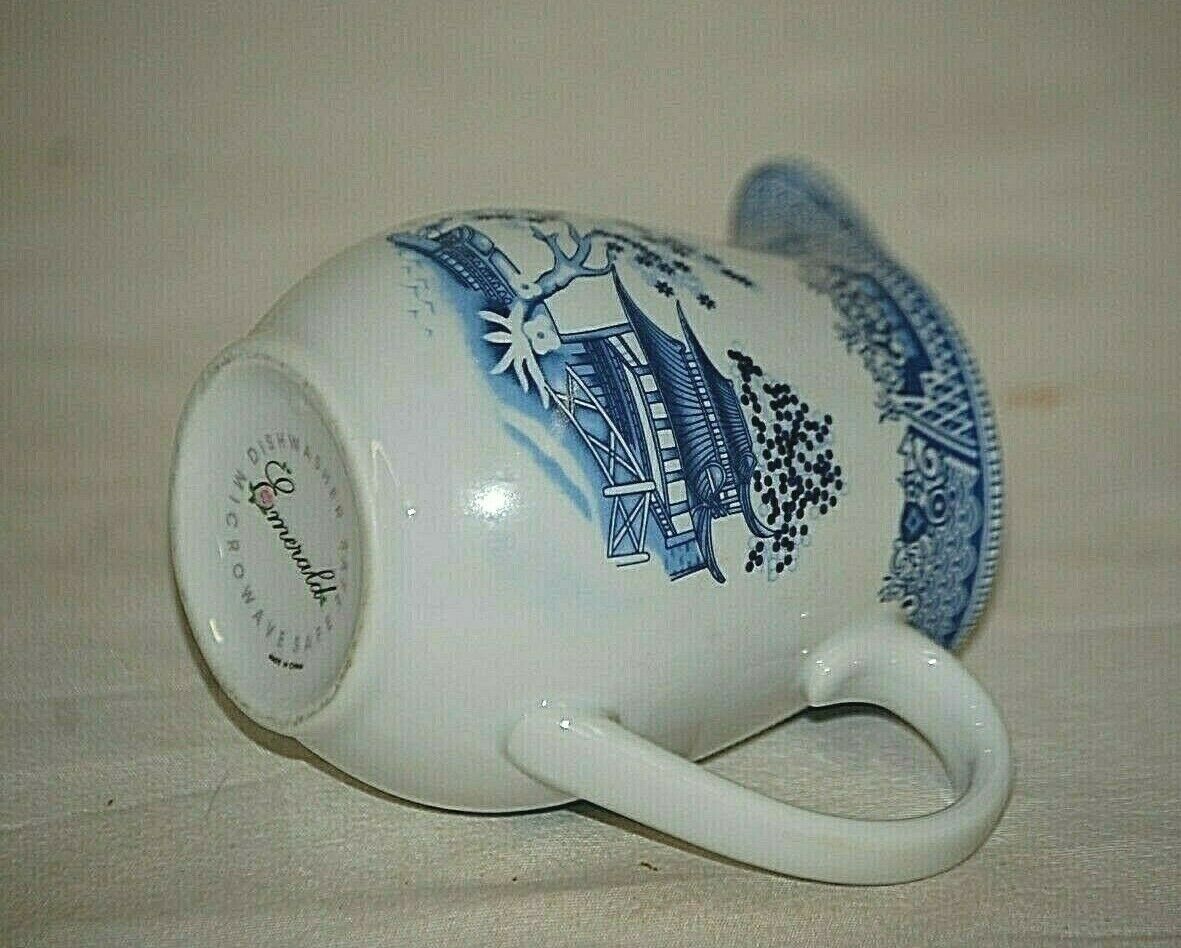 Chinese Garden Blue By Emerald Porcelain Milk Creamer Pitcher Oriental Scene