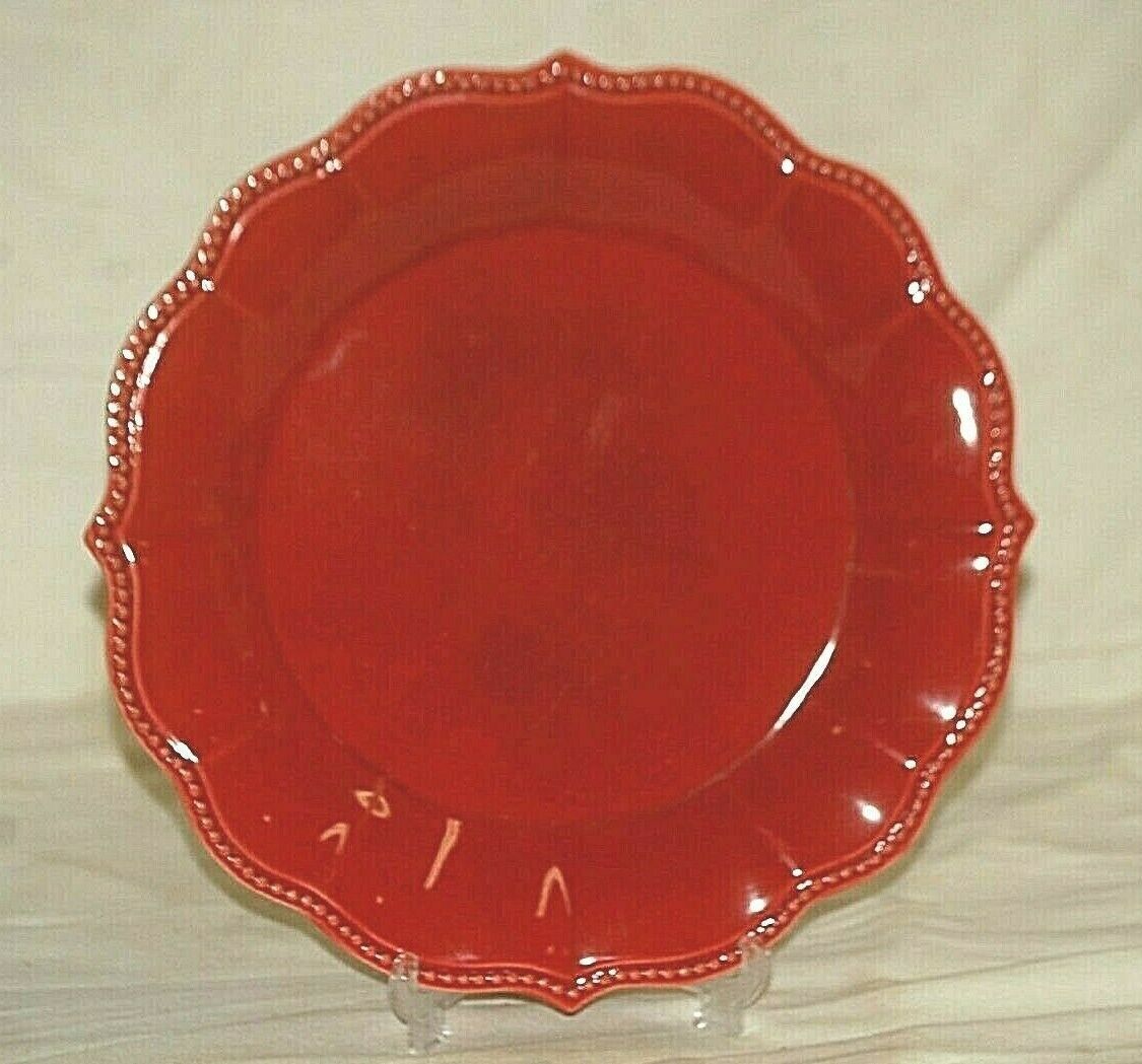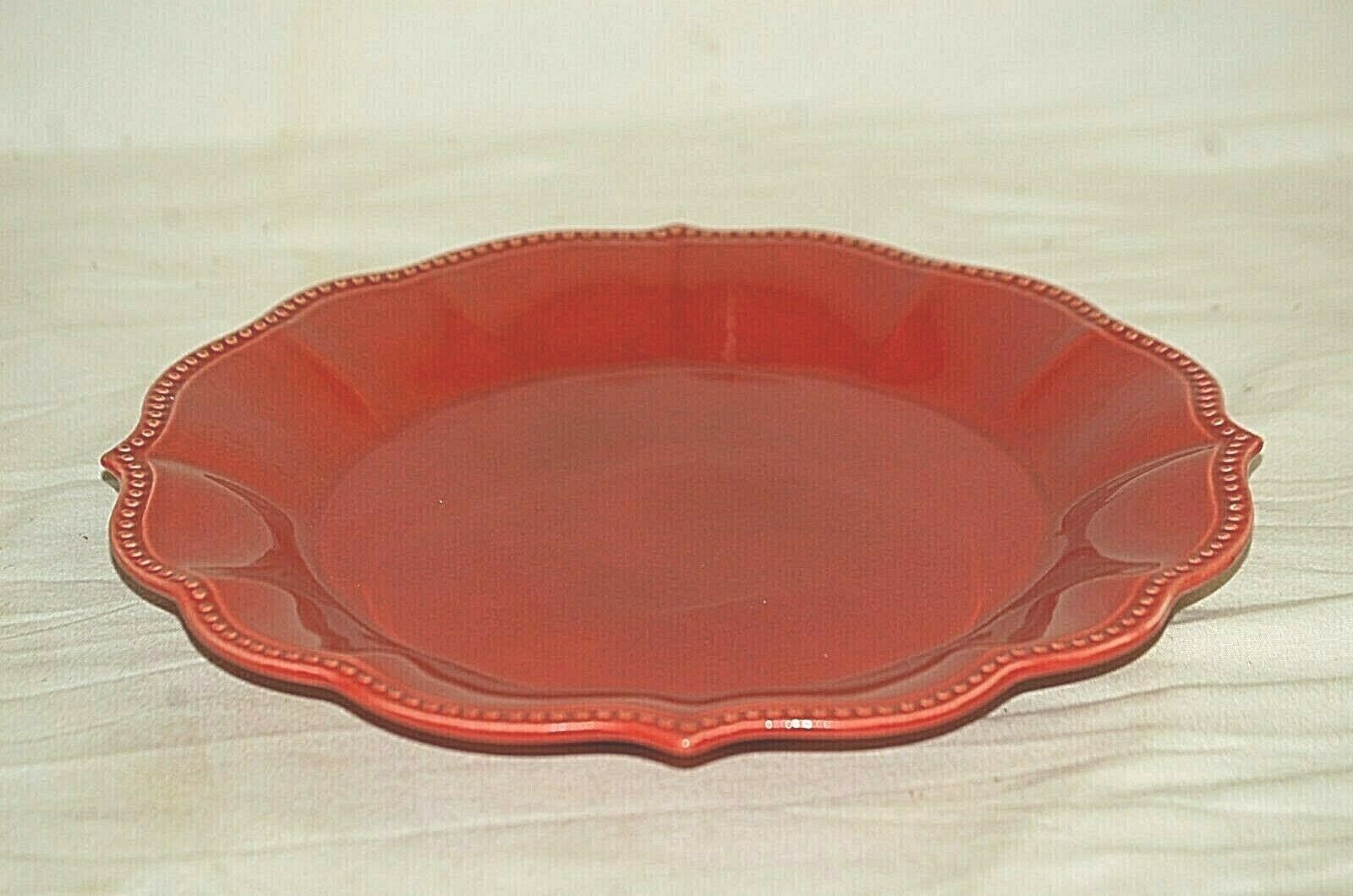 Paige Red by Pioneer Woman 10-3/4" Dinner Plate Beaded Edge Scrolls Rim Scallop
