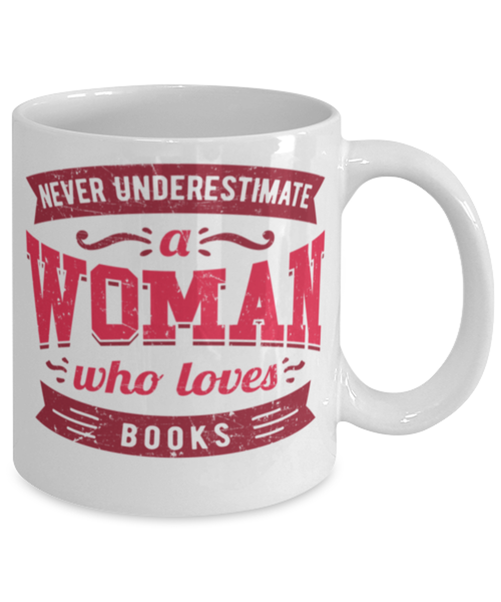Never Underestimate a Woman Who Loves books Mug Great saying gift for her with