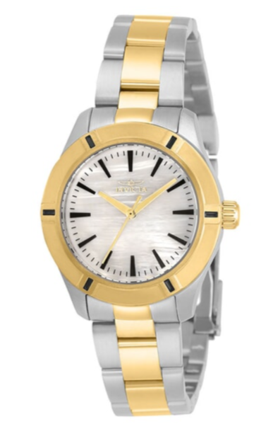 Invicta Women's 30739 Pro Diver Quartz 3 Hand White Dial Watch Gold/Silver Tone