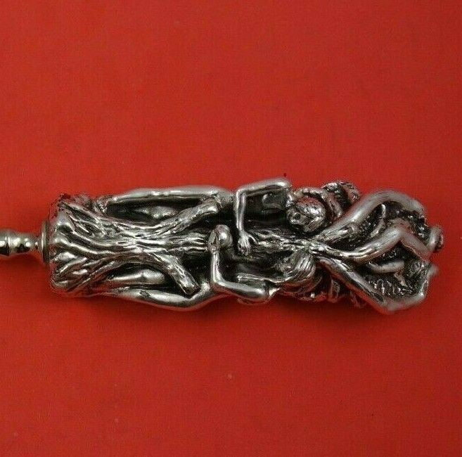 Sterling silver handle figural serrated Cake Knife 12 1/2" with plated blade in the pattern Adam and Eve by Yaakov Heller. It is not monogrammed and is in excellent condition. Spectacular piece!