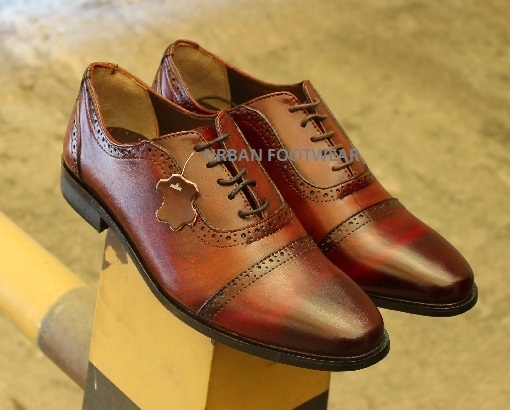 New Men's Handmade Shoes Two Tone Cap toe style Burgundy Leather Lace Up Dress