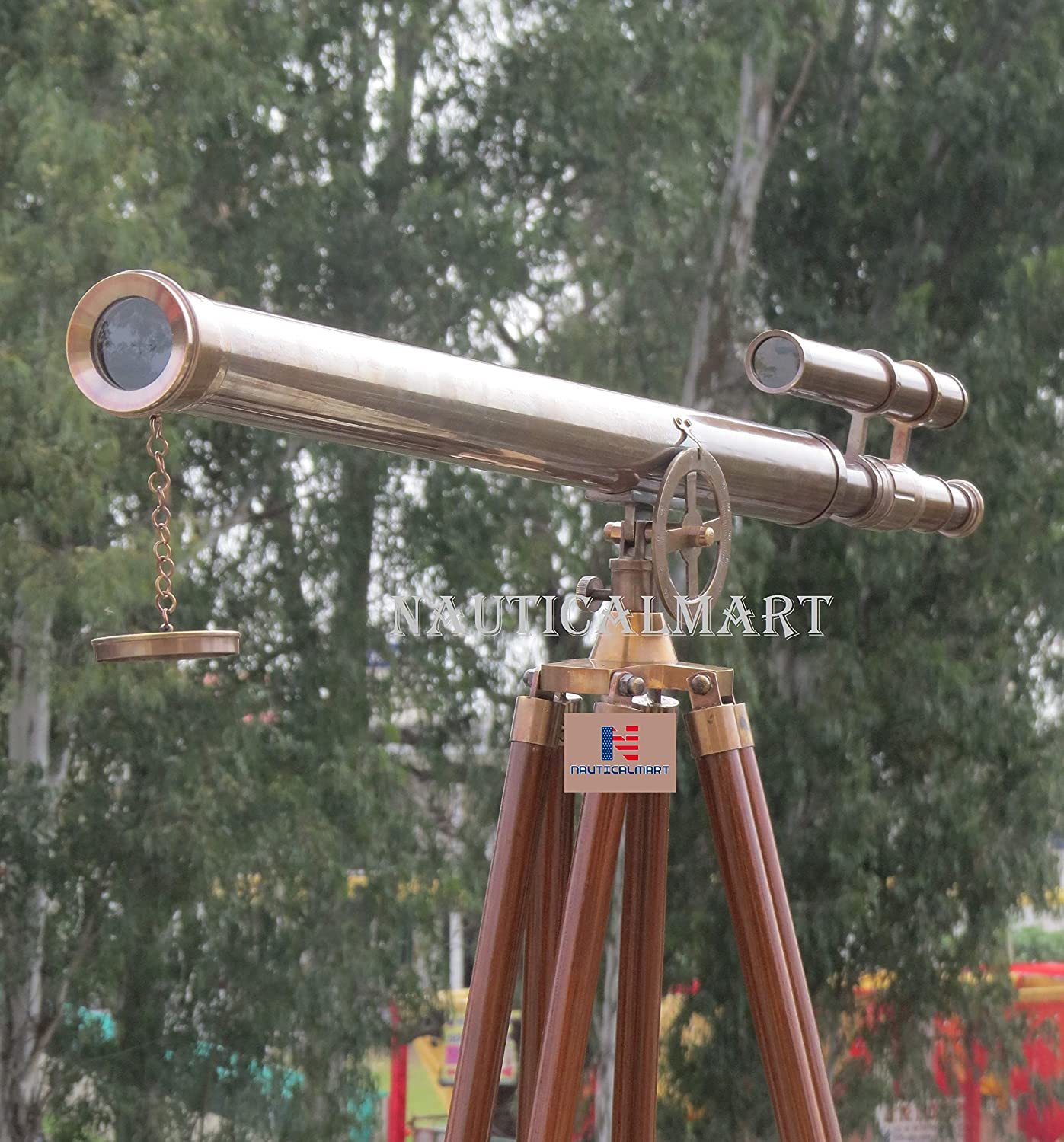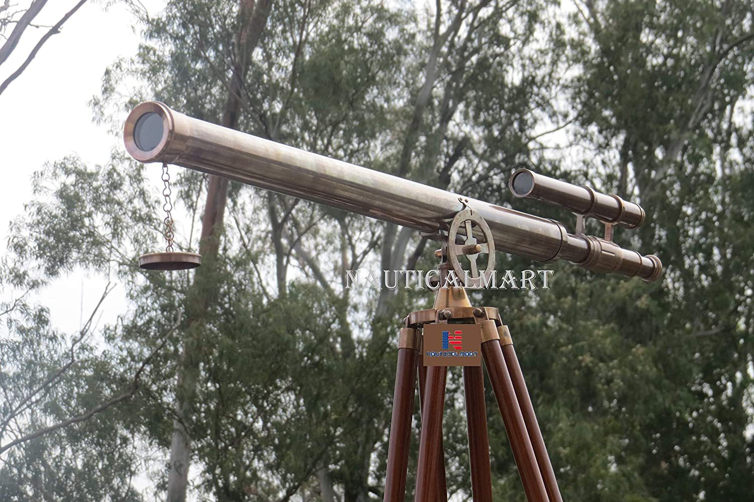 Floor Standing Oil-Rubbed Bronze Griffith Astro Telescope 64" - Telescope with free Gold Basket The Nauticalmart Oil-Rubbed Bronze Griffith Astro Telescope 64 inch with view finder is the pinnacle of our wide telescope selection. This beautiful oil-rubbed bronze telescope is mounted on a wooden tripod. This telescope is a beautifully functioning nautical masterpiece, with a 42mm objective lens that produces up to 15x magnification. Focusing is accomplished by adjusting the eyepiece ring on the telescope tube and a removable oil-rubbed bronze cap, connected by a chain, protects the objective lens.The wooden tripod stand features smooth, polished and round legs, each with oil-rubbed bronze fittings and a screw release to let you adjust the height. An oil-rubbed bronze chain holds the three wooden legs together to maintain the telescope's position. Dimensions: 64 inch H x 25 inch W x 32 inch L 15X Magnification Oil-rubbed bronze telescope body Glass optics for a clear view