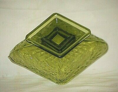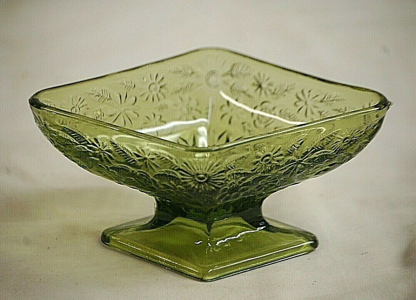 Pineapple & Floral Green by Indiana Glass Diamond Shape Compote Bowl Depression
