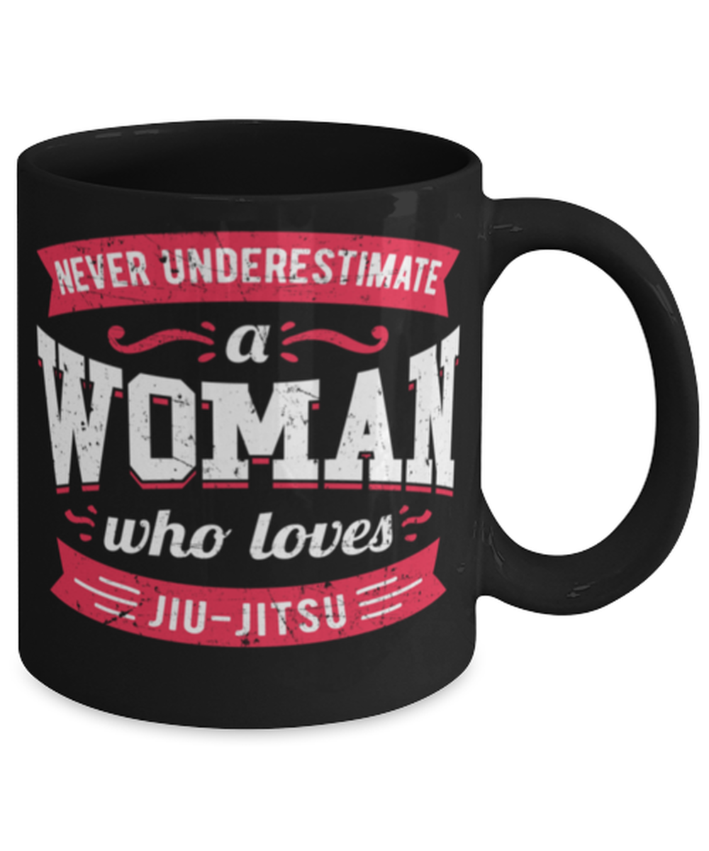 Never Underestimate a Woman Who Loves Jiu-Jitsu Mug Great quote gift for her