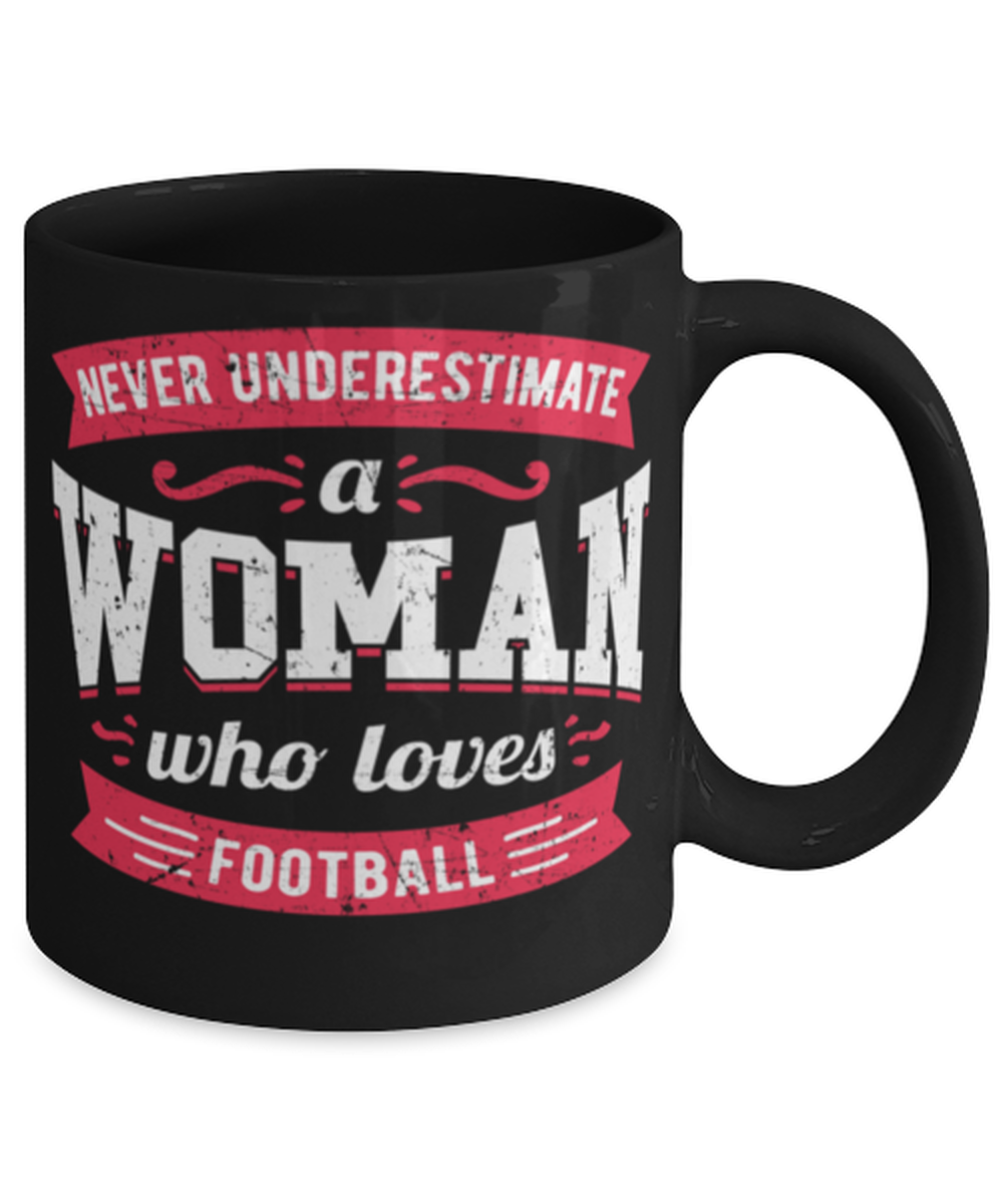 Never Underestimate a Woman Who Loves Football Mug Great quote gift for her
