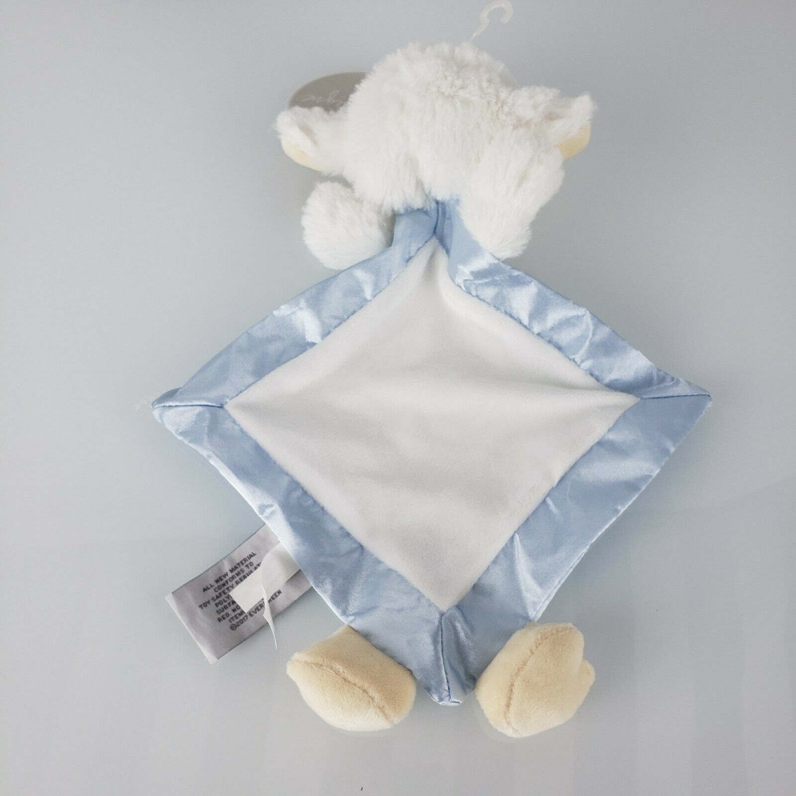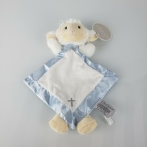B Boutique By Evergreen Stuffed Plush White Blue Sheep Lamb Satin Blanket Cross