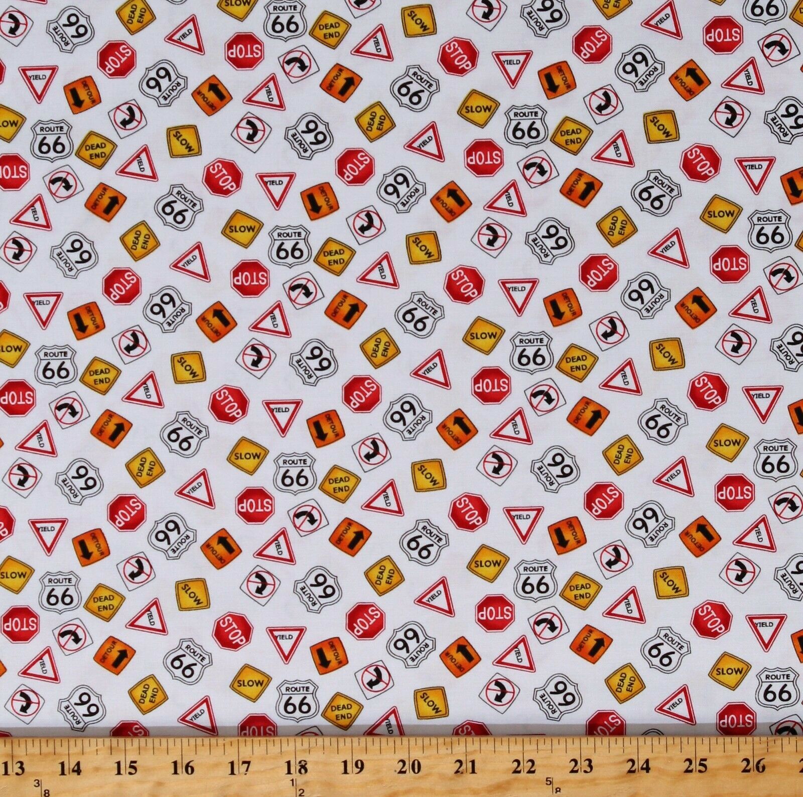 Cotton Route 66 Road Signs Stop Yield Fabric Print by the Yard D476.44