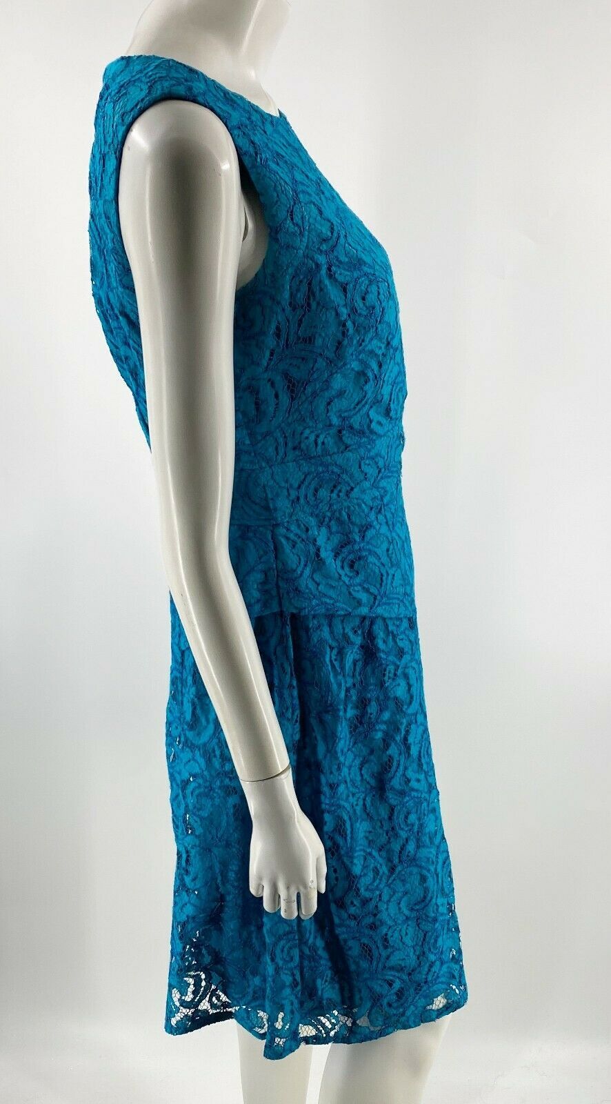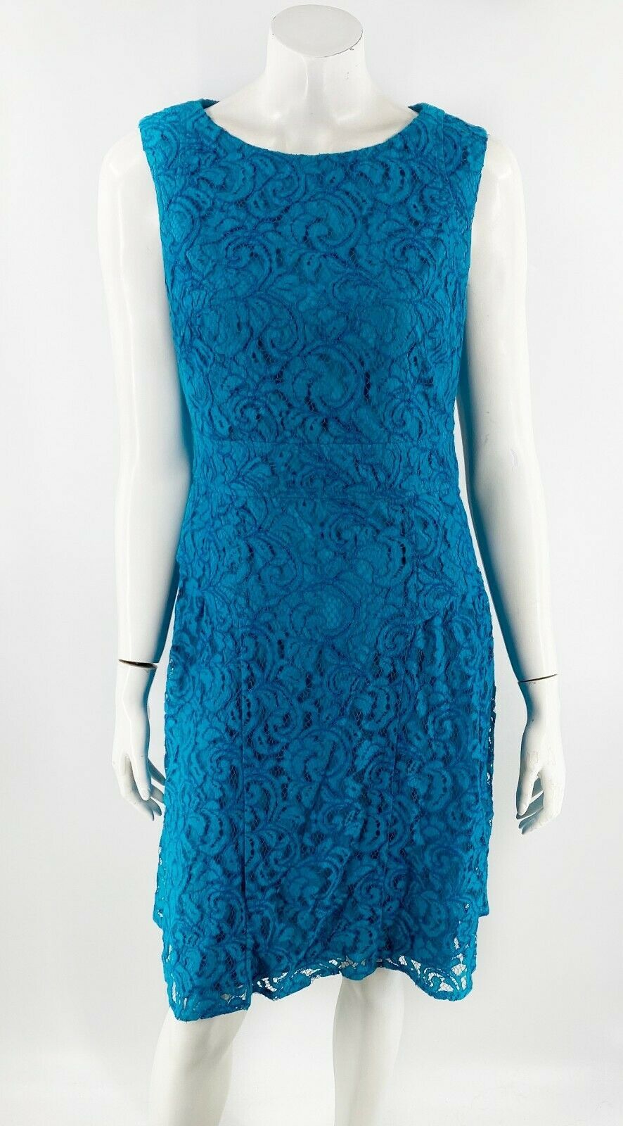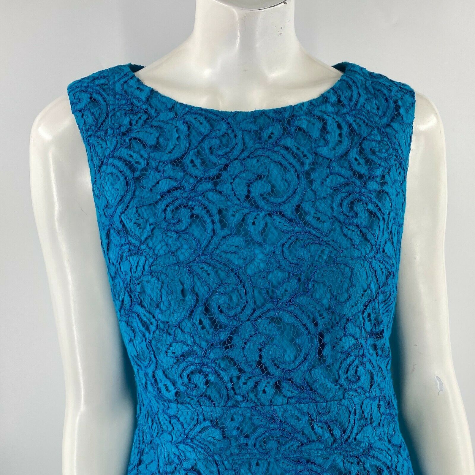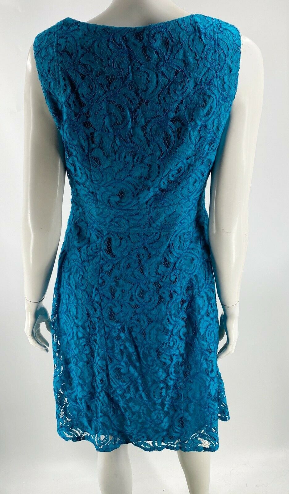 Adrianna Papell Dress Size 10 Teal Blue Lace Sleeveless Cocktail Evening Womens
