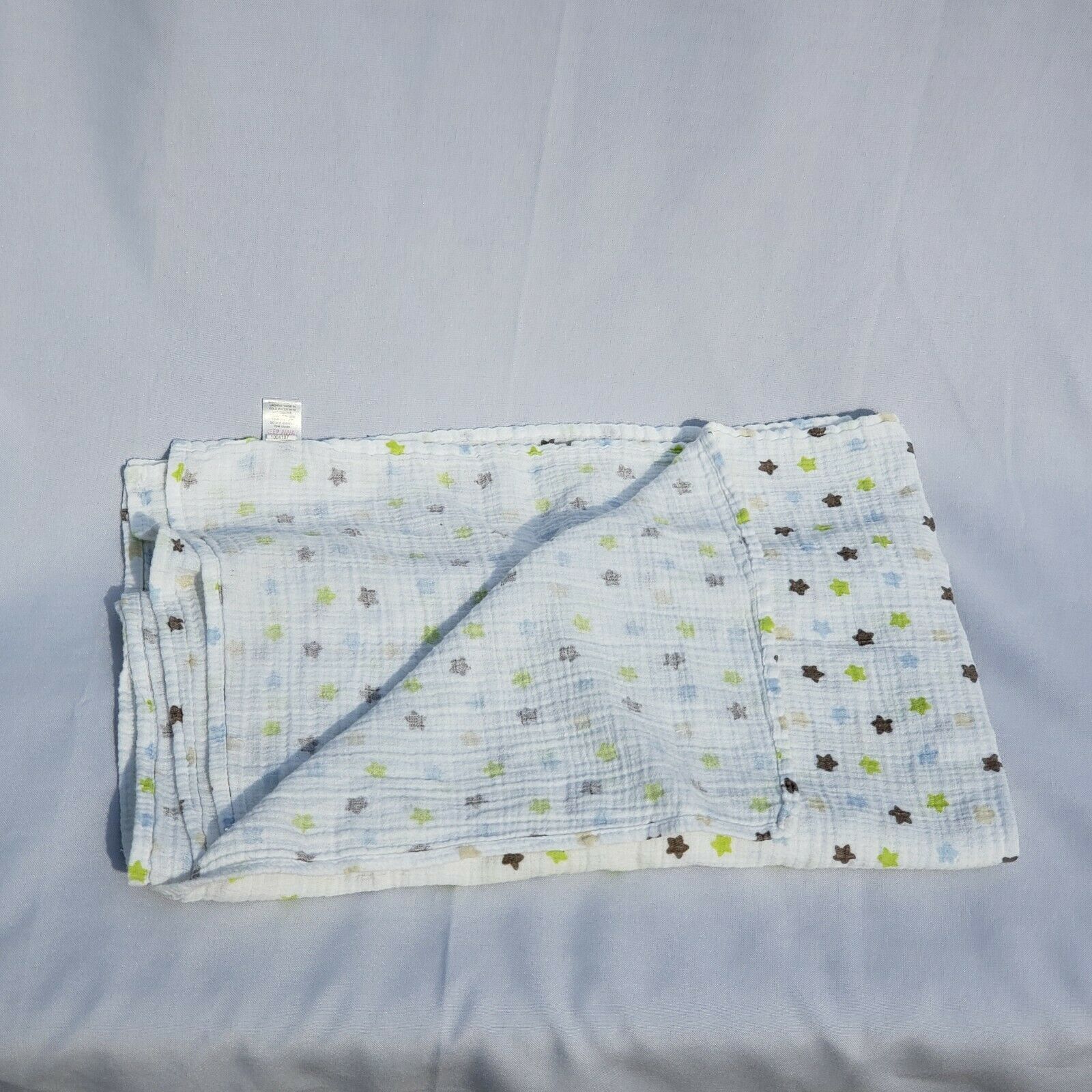 Chick Pea Baby Blanket Lime Green Brown Tan Blue White Star Muslin Cotton