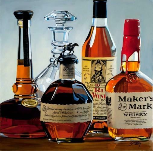 Thomas Stiltz "Pride of Kentucky" Bourbon bottles Shown 28x28 Giclee Canvas HS/#