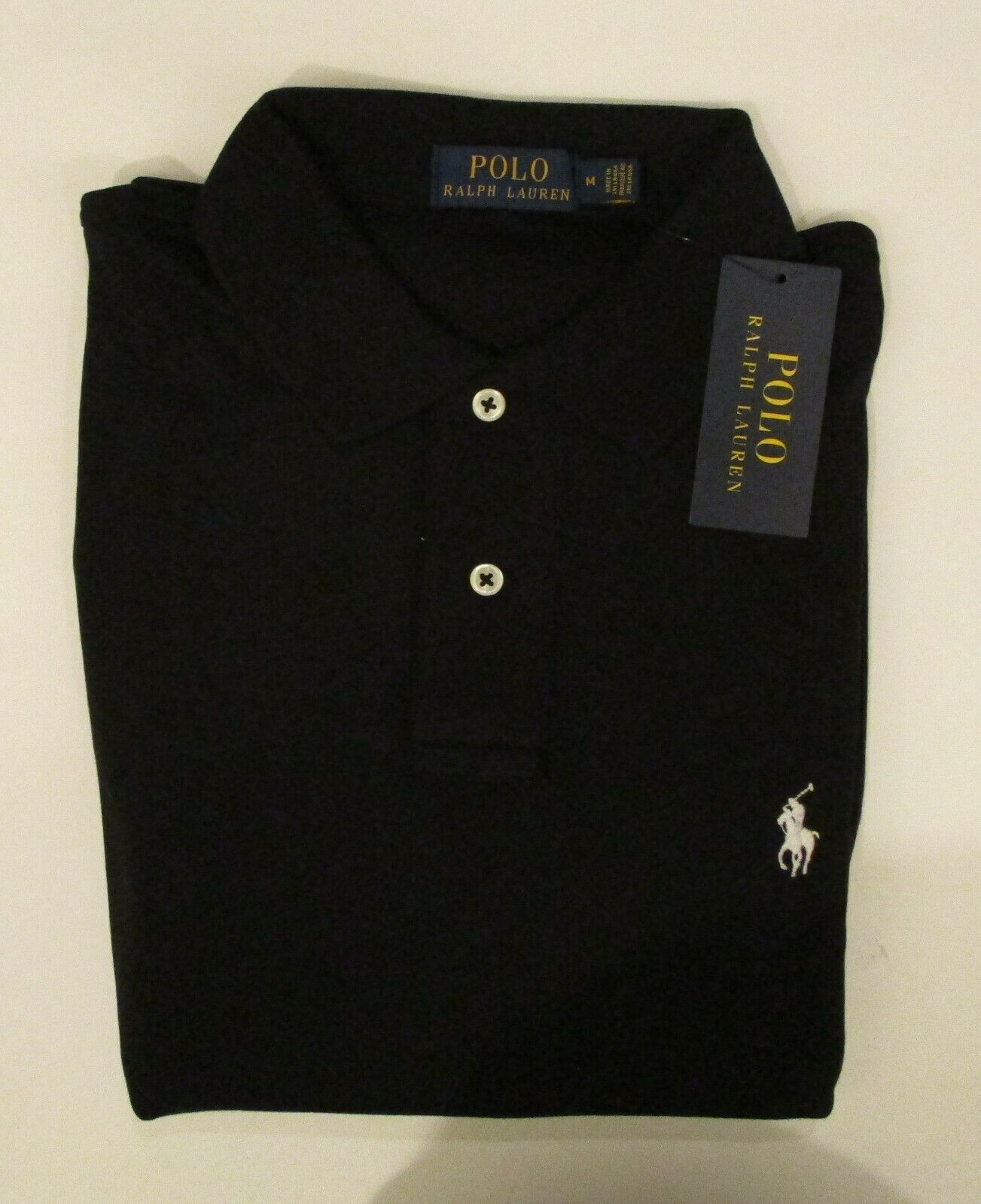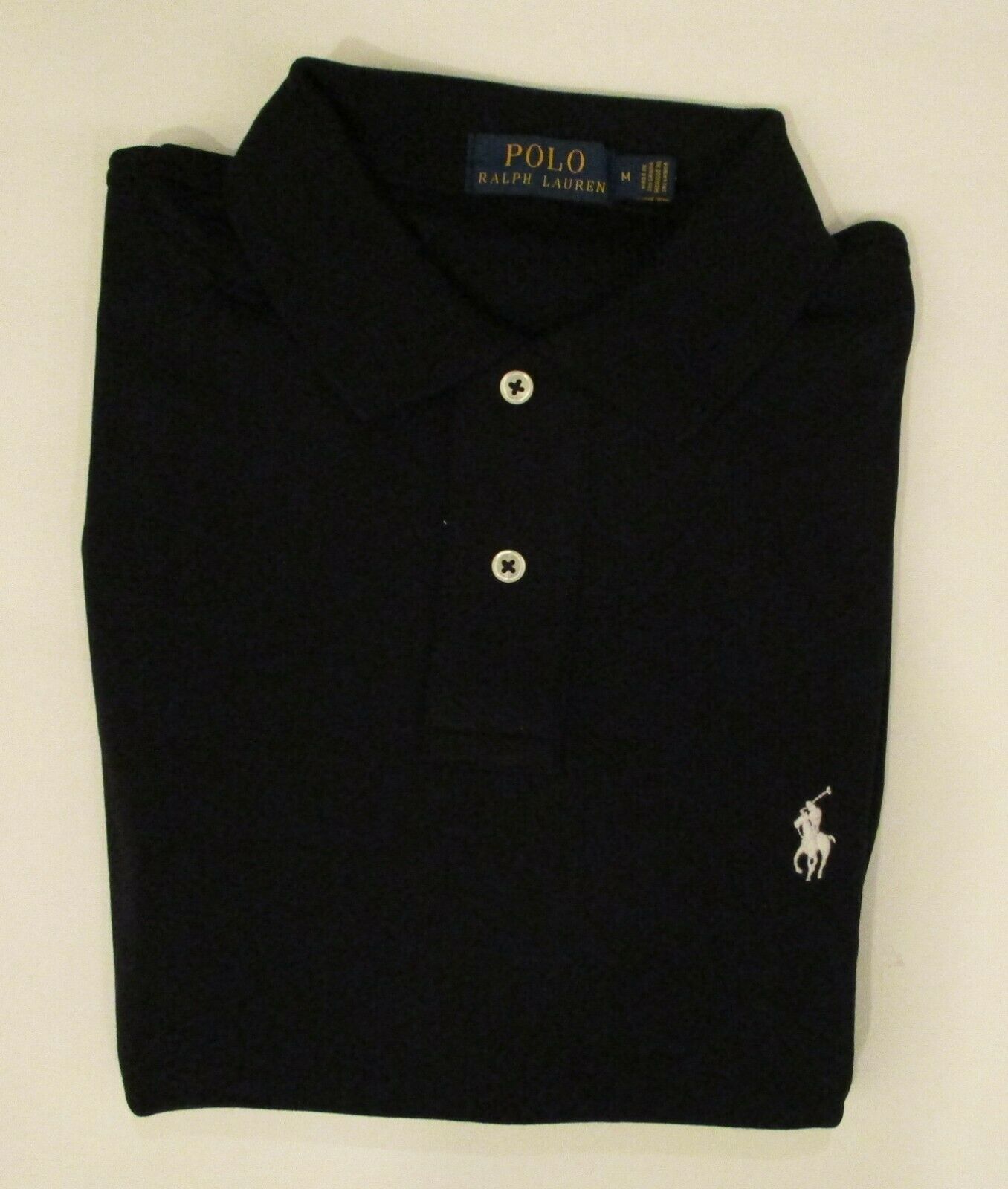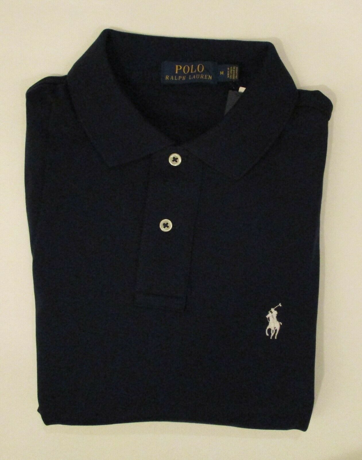 POLO RALPH LAUREN 100% COTTON WHITE WITH NAVY BLUE PONY SOFT TOUCH INTERLOCK NWT