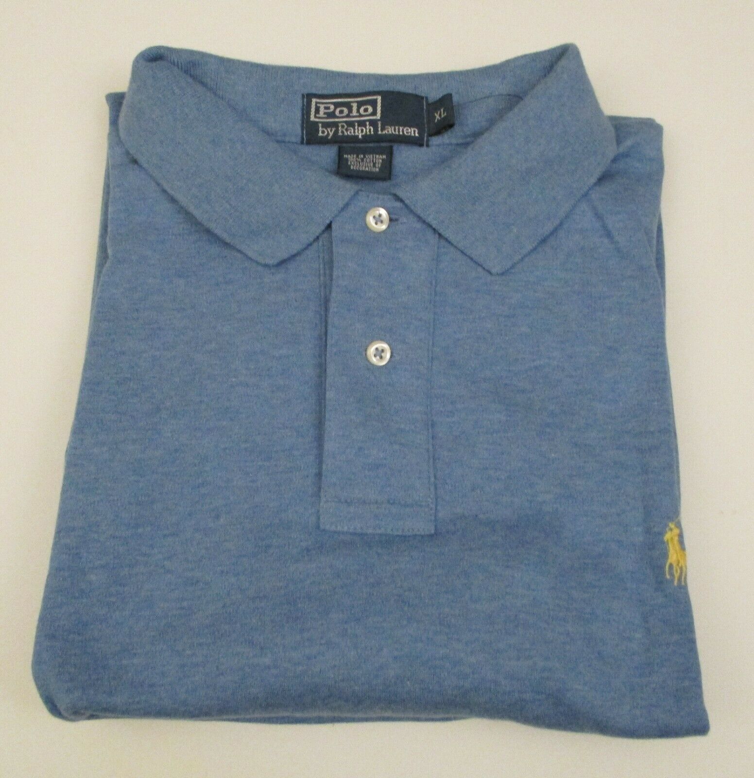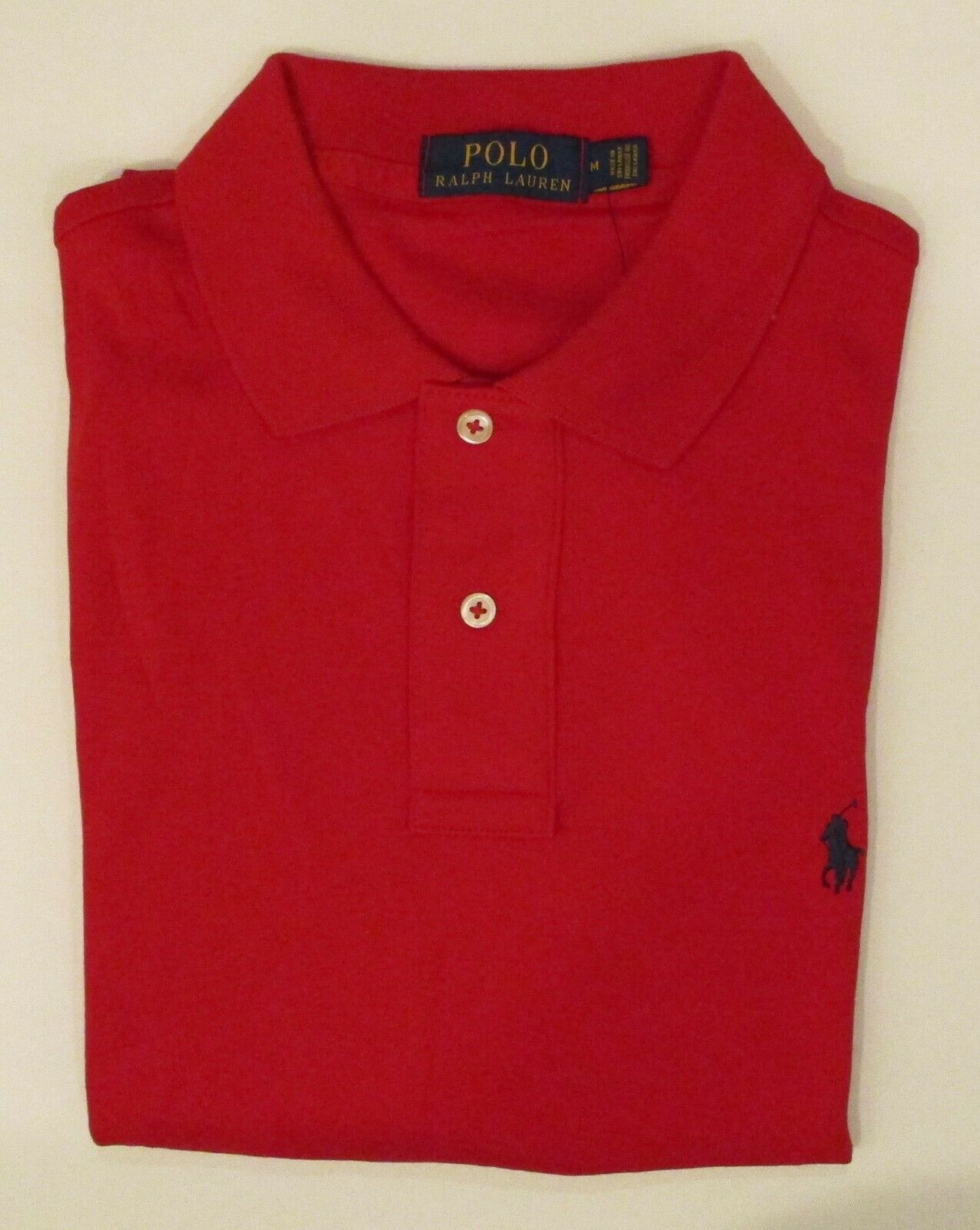 Authentic Polo Ralph Lauren Iconic Interlock Polo - NWT Available sizes: S, M, L, XL, XXL Choice of Colors White with Navy Polo Logo Red with Navy Polo Logo Black with White Polo Logo Navy with White Polo Logo Light Blue with white threads and Yellow Polo Logo (Light Blue #1) Light Blue with white threads and Pink Polo Logo (Light Blue #2) Light Blue with Navy Polo Logo (Light Blue #3) Sun Orange with Green Polo Logo Embroidered Signature Polo Player on left chest. 100% cotton. Classic style. Classic fit. 2 button shirt. Short sleeve.