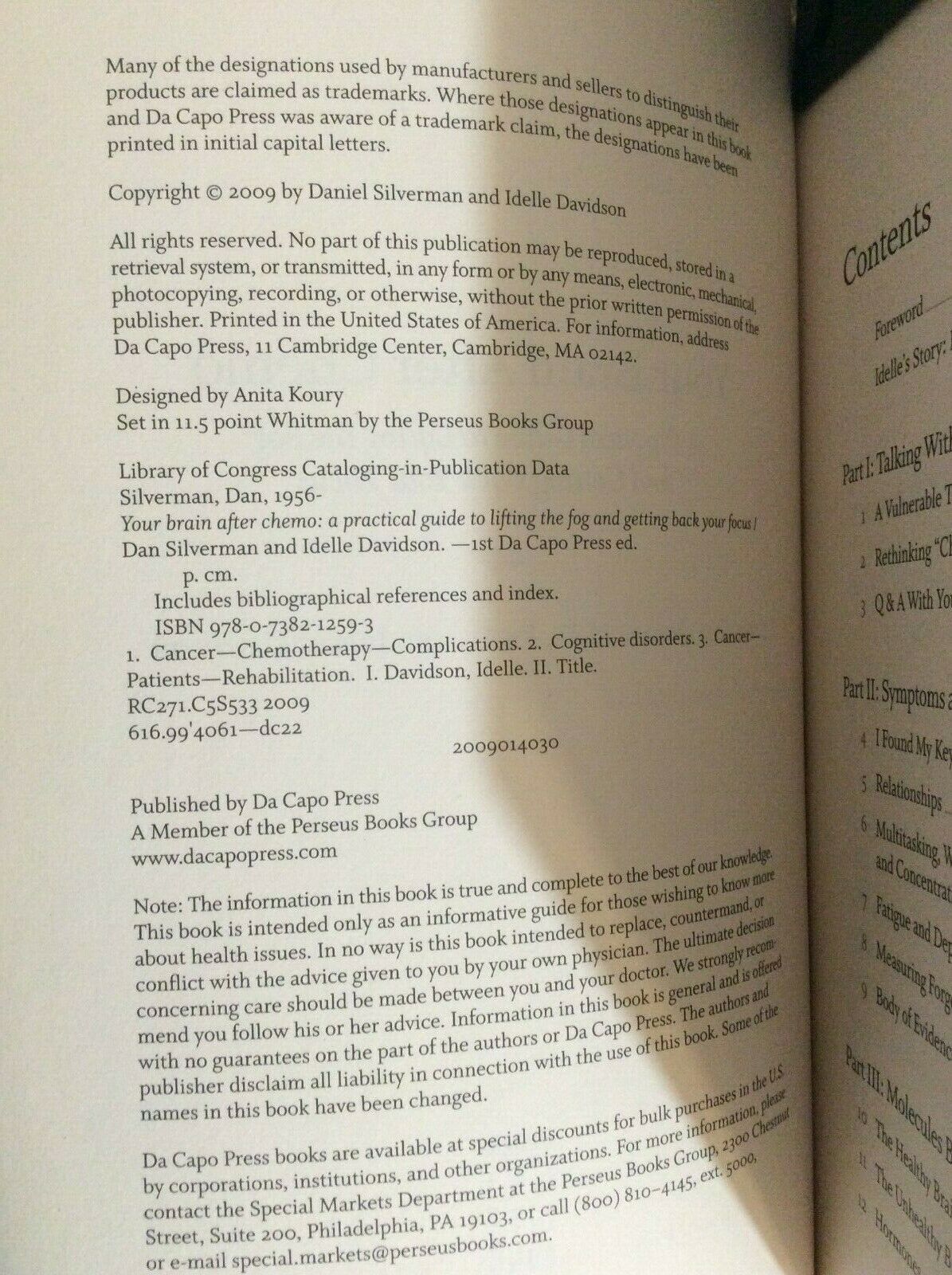 YOUR BRAIN AFTER CHEMO by DAN SILVERMAN, MD - BRAND NEW - HARDCOVER