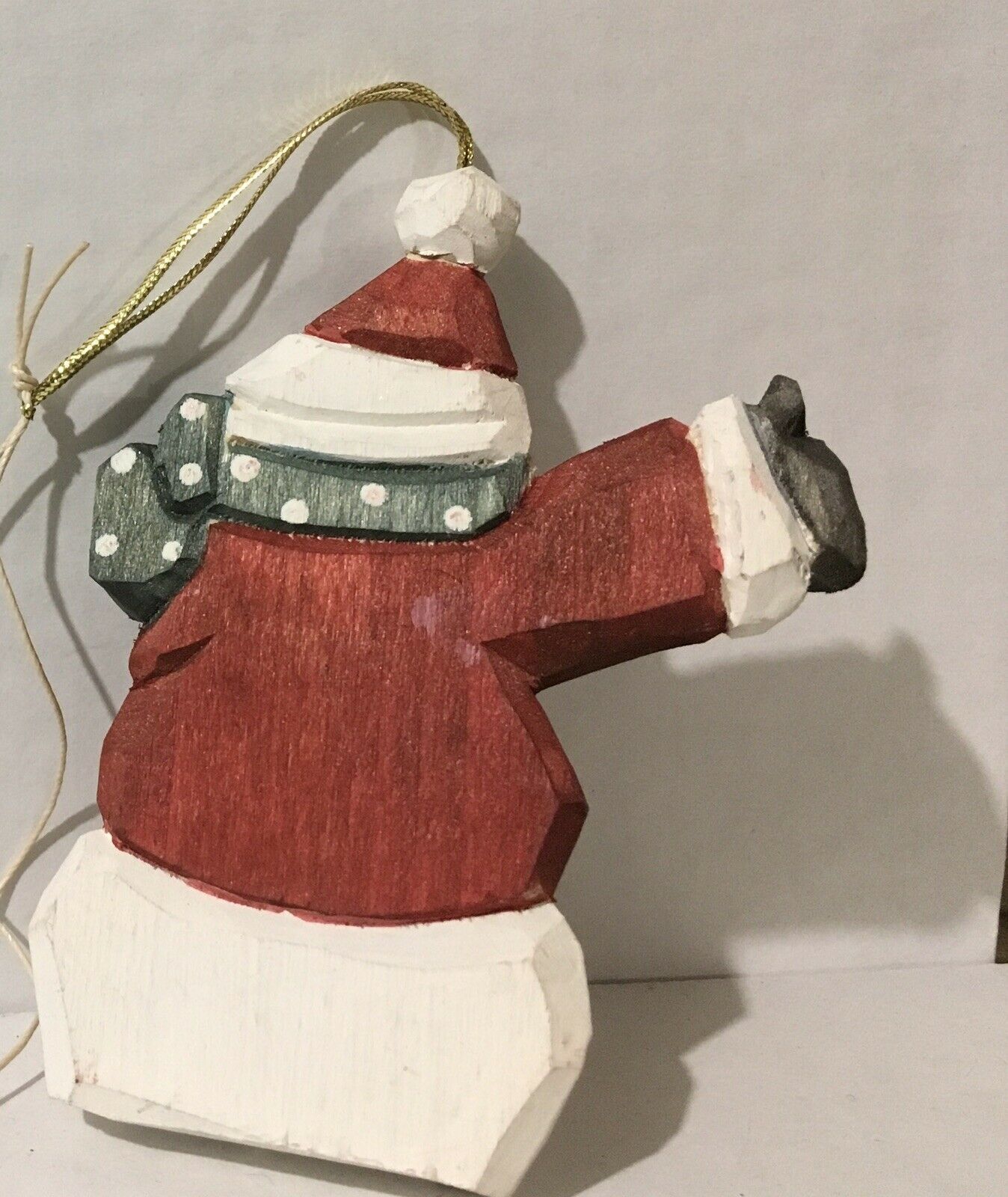 Handmade wooden carved and painted snowman flat rustic measure 3.5 adorable