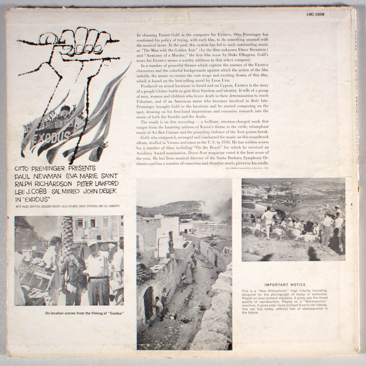 Exodus (1960) Vinyl LP PLAY-GRADED Soundtrack, Ernest Gold