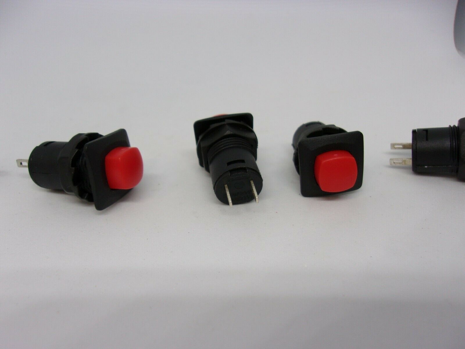 Pack of 5, 3A 125V 1.5A 250V AC 12mm 2 Pins Red Push Power Switch Button, On Off Squared Push Button, Round Panel Cutout Shape.