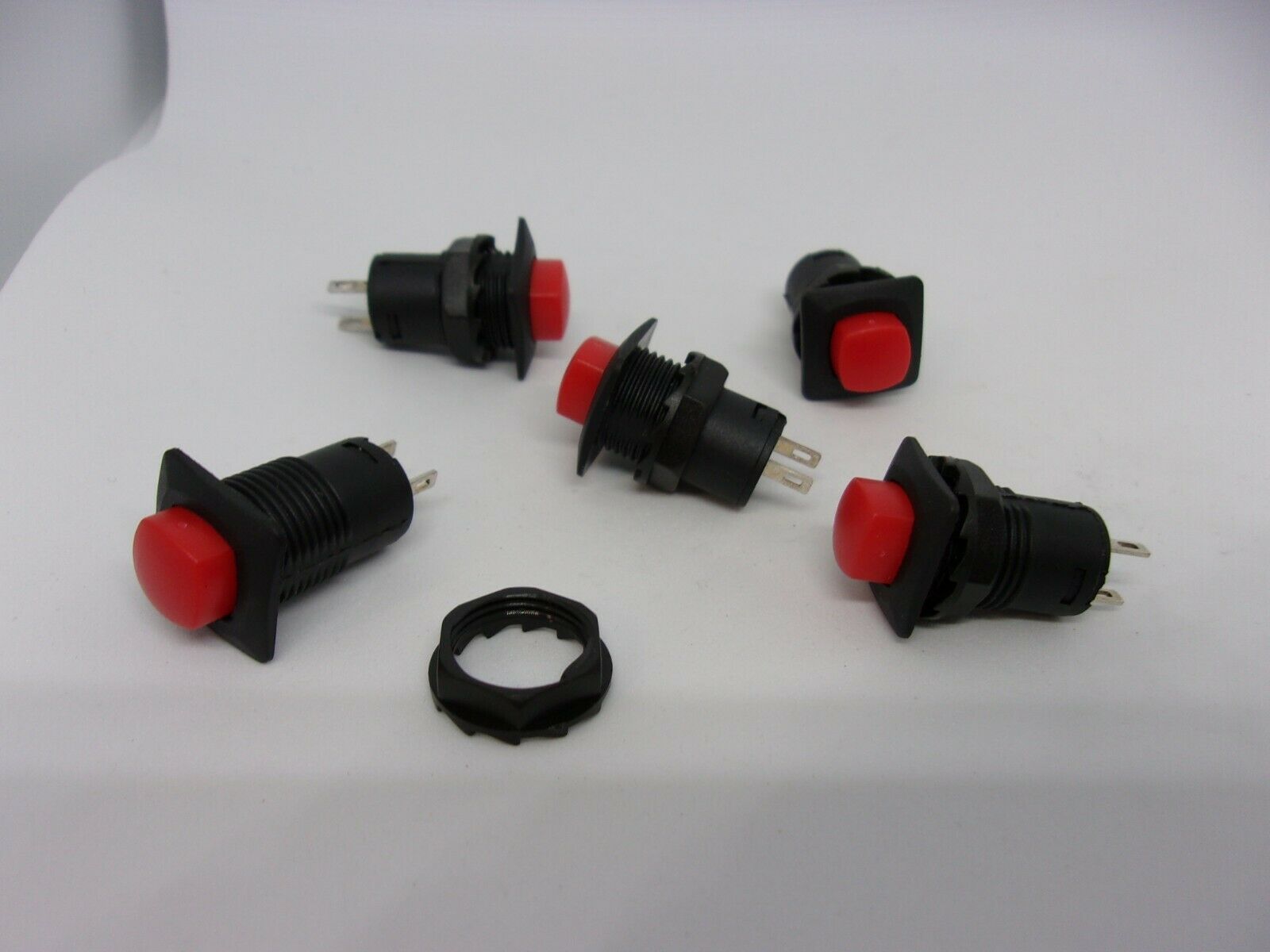 5x Pack Lot 3A 125V 1.5A 250V AC 12mm 2 Pins Red Push Power Switch Button On Off
