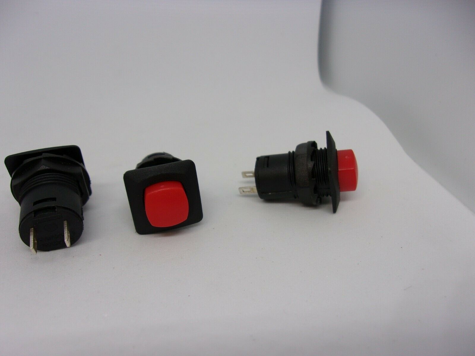 5 x 3A 125V 1.5A 250V AC 12mm 2 Pins Red Push Power Switch Button, On Off Squared Push Button, Round Panel Cutout Shape.