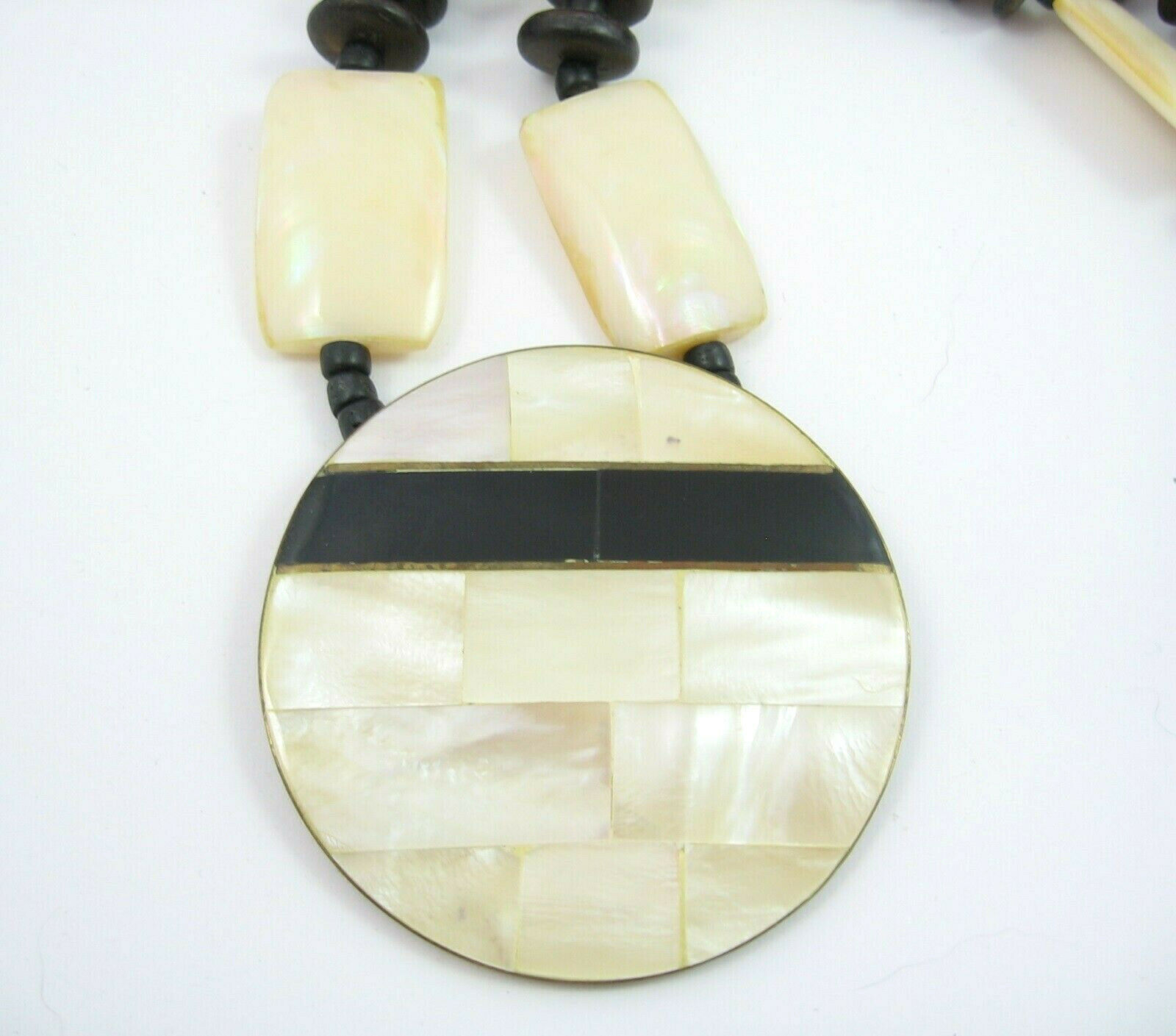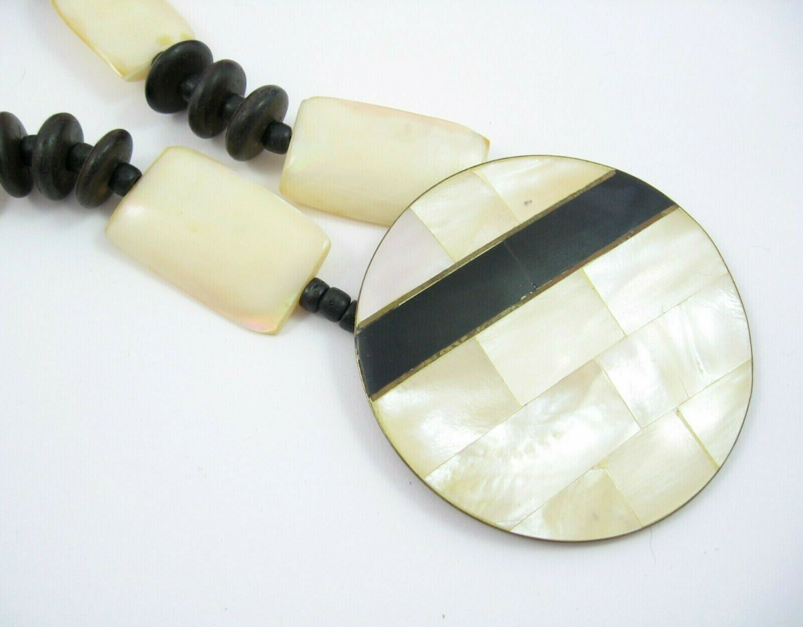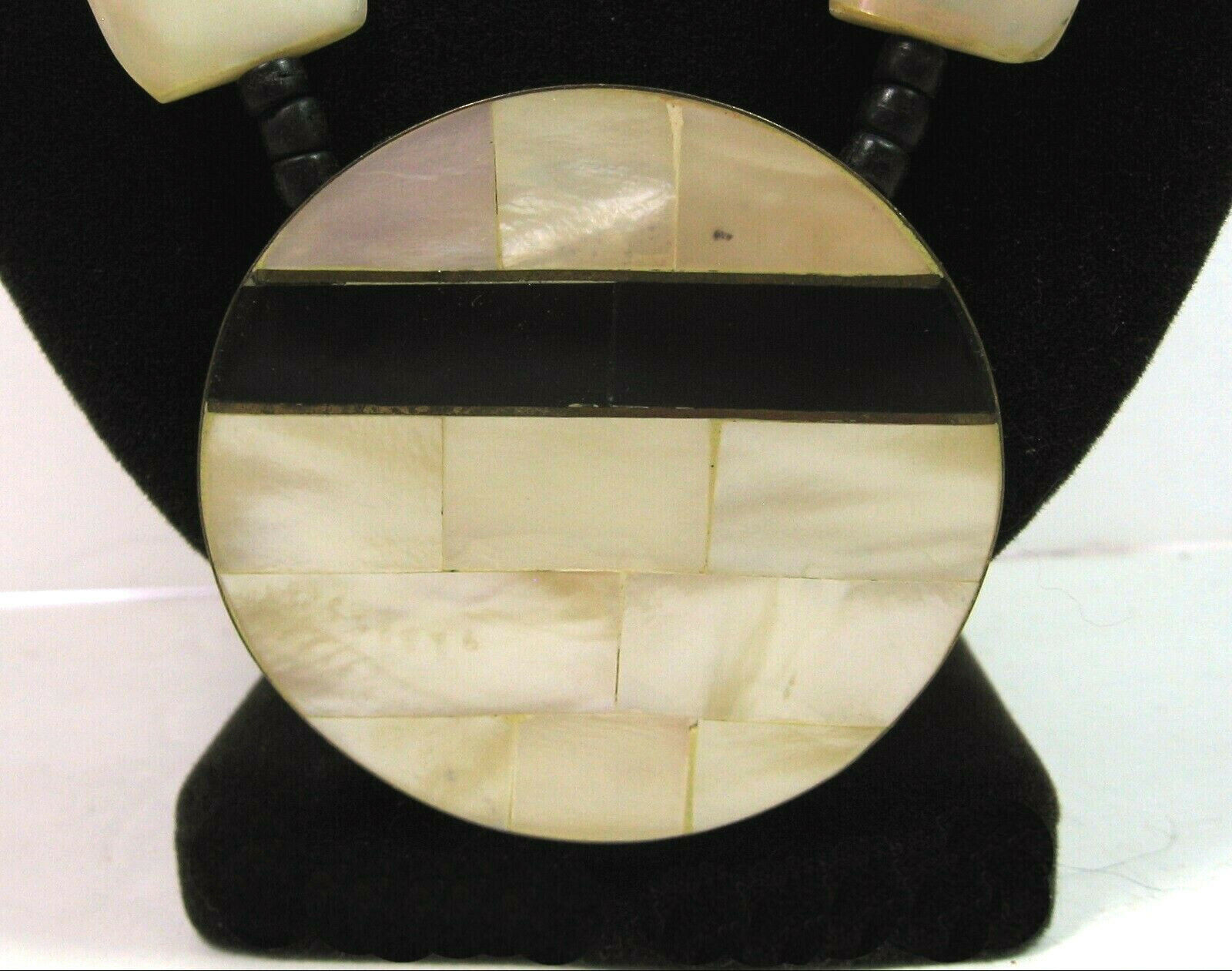 This is a vintage MOTHER OF PEARL and BLACK ENAMEL MEDALLION NECKLACE!