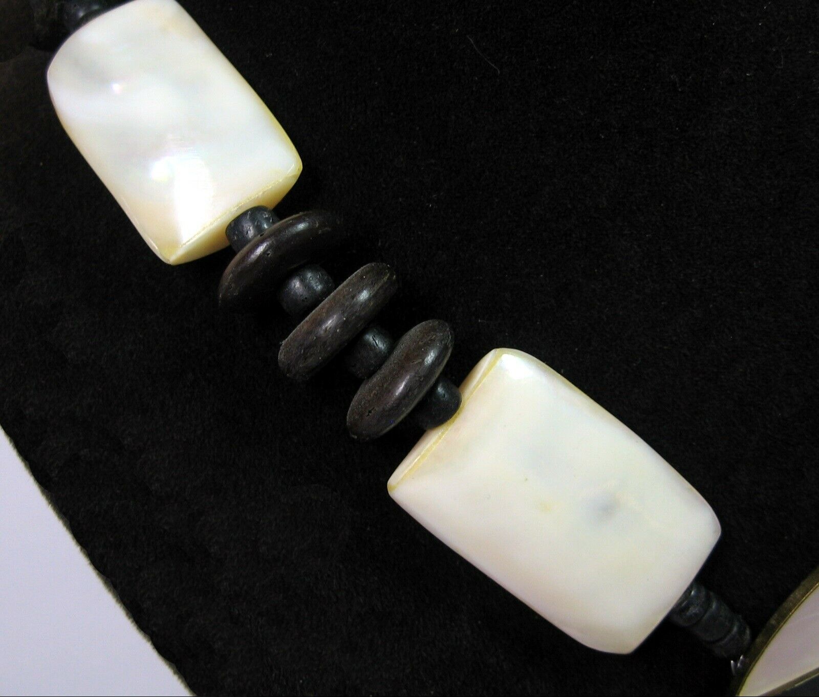 The contrast between the dark brown lightweight beads and the beautiful sheen of the MOP shell beads and medallion is just outstanding!