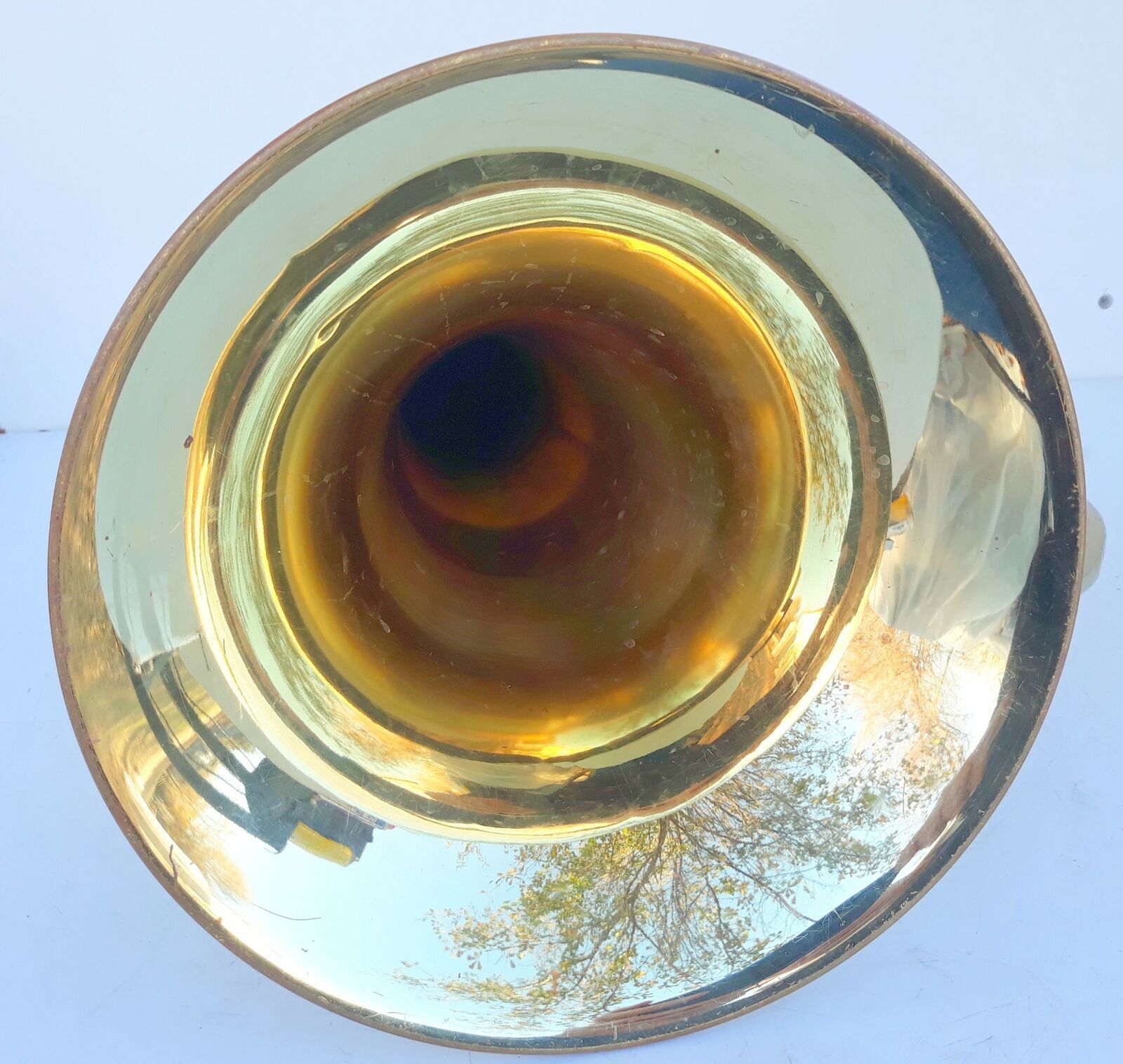 The instrument cosmetically has various dings, dents of various sizes,scratches and some loss of the finish .Lead pipe looks to have been repaired at some time .