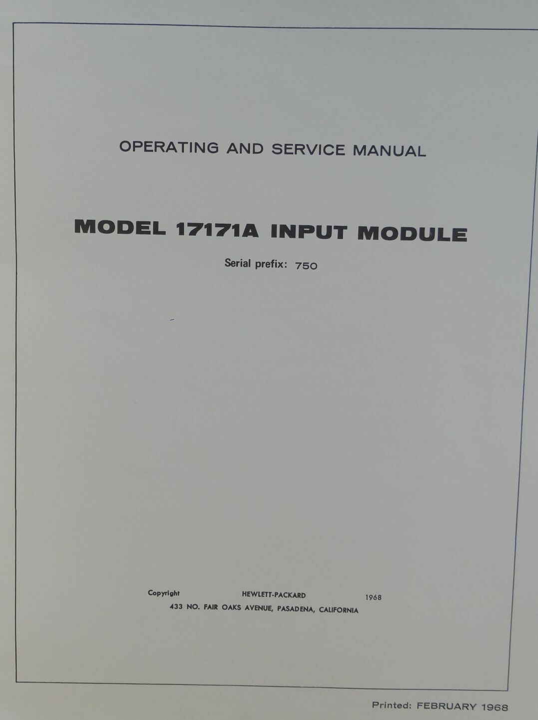 HP 17171A DC PREAMPLIFIER INPUT MODULE OPERATING & SERVICE MANUAL