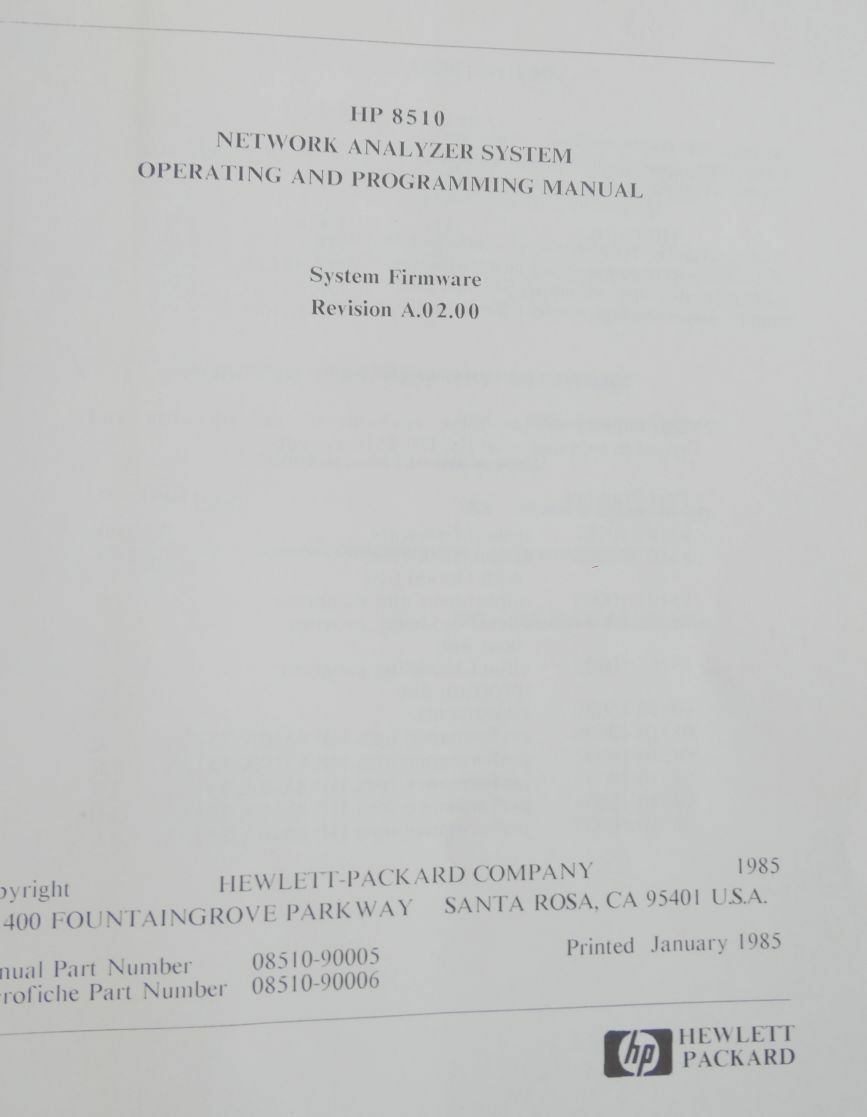 Hp 8510 Network Analyzer Operating & and 48 similar items