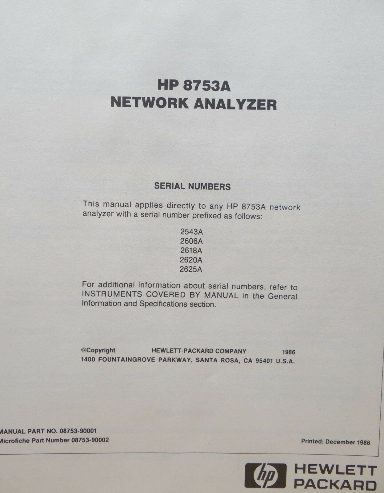 HP 8753A NETWORK ANALYZER TEST SETS & ACCESSORIES MANUAL