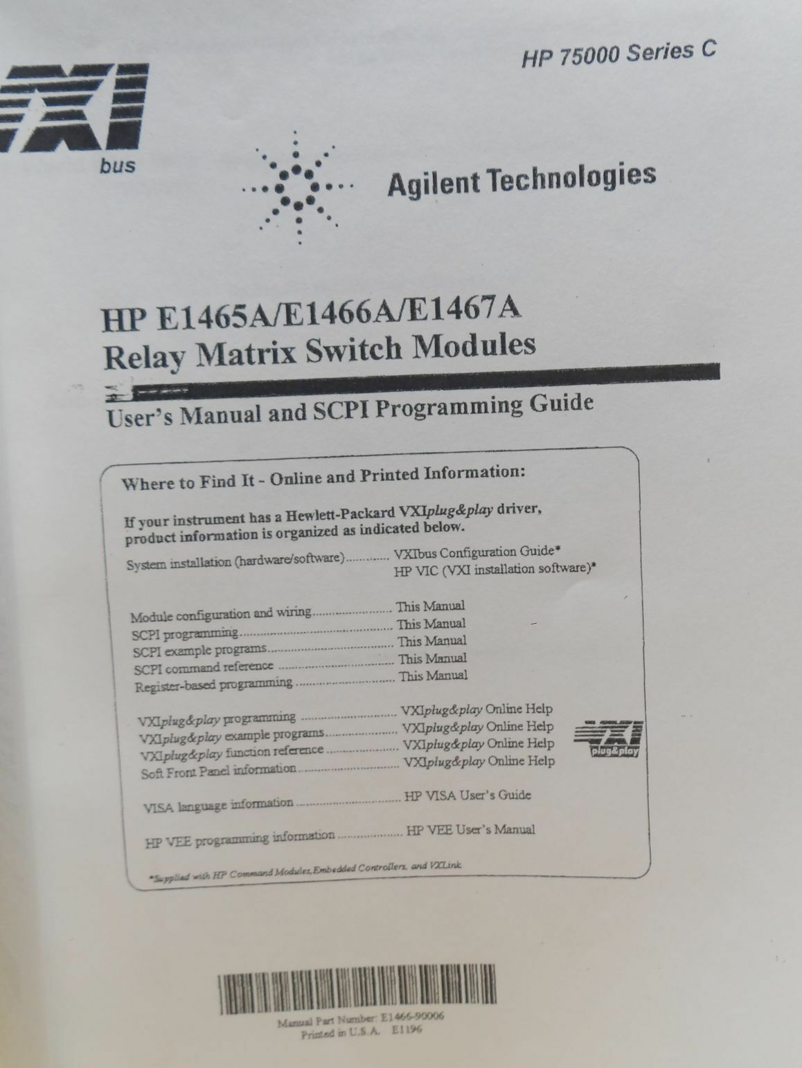 HP E1465A/E1466A/E1467A RELAY MATRIX SWITCH MODULES USER MANUAL SCPI PROG GUIDE