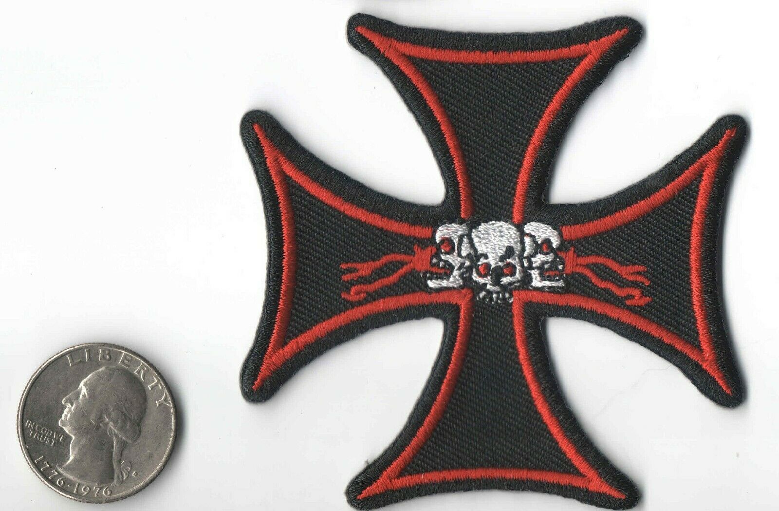 Maltese / Iron Cross With 3 Skulls Iron On Sew On Embroidered Patch 3"X 3"